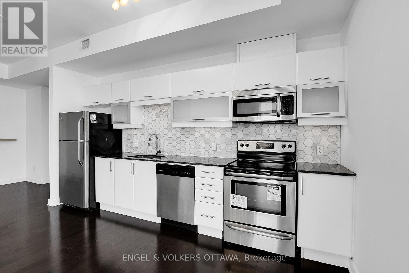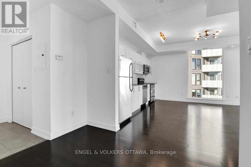 Luxurious 1-bedroom + den CORNER unit, spanning 805 sq. ft.-one of the largest 1 bed. floor plans in its collection. This sophisticated residence offers an open-concept layout with floor-to-ceiling windows that provide million-dollar, unobstructed downtown views from the 20th floor. The custom kitchen is equipped with granite countertops, a beautiful new backsplash, and elegant white cabinetry. Sliding doors open to a private balcony, perfect for enjoying the city scape. The versatile office/den area is conveniently located to the right of the kitchen. The large primary bedroom boasts a corner window and a dedicated study area. Additional features include in-suite laundry (2024), custom roller blinds (2025), hardwood floors, and updated light fixtures throughout the unit. A parking space and storage locker are also included. Residents will enjoy an array of amenities, including a 24-hour concierge/security service, a guest suite, a terrace, an outdoor patio with BBQs, an indoor pool, a gym, and a conference room. For ultimate convenience, Farm Boy is located on the ground level, with amazing restaurants and an LCBO just steps away. The building offers quick access to Parliament Hill, Rideau Centre, the University of Ottawa, and the Financial District. (id:58075)