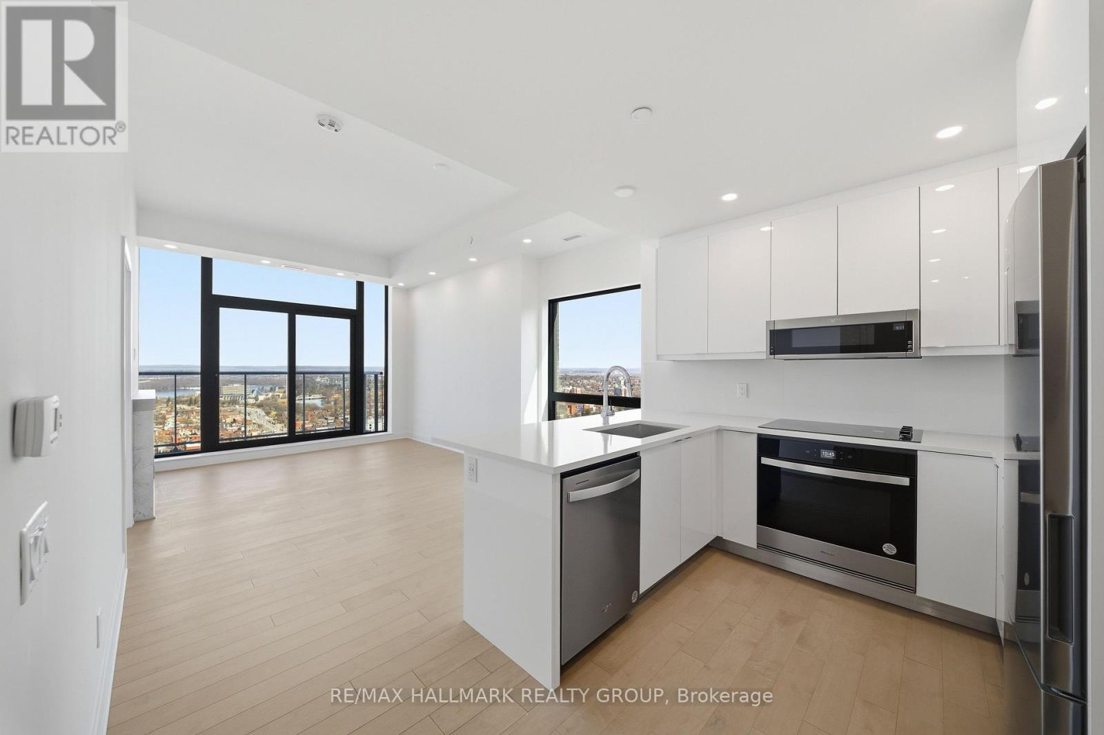 Never lived-in 2-bedroom penthouse corner condo on top floor with expansive windows, balcony, and premium finishes, located in Claridge Royale in the ByWard Market with immediate possession and no HST. This upper-level corner unit offers elevated views, abundant natural light, and a spacious open-concept layout with excellent bedroom separation. The kitchen features quartz or granite countertops, matching backsplash, stainless steel appliances, and soft-close cabinetry. Hardwood flooring, smooth ceilings, and pot lighting create a refined and modern interior. Both bedrooms are well-proportioned, making this an ideal layout for end users or investors. Residents benefit from a full amenity offering including fitness centre, indoor pool, rooftop terrace with BBQs, theatre room, party lounge, guest suite, and 24-hour security. Positioned above Metro and steps to LRT, Rideau Centre, and Ottawa's top destinations. A rare opportunity to secure a premium high-floor corner unit that is move-in ready. If this unit isn't the perfect fit, additional studio, one-bedroom, and two-bedroom layouts are available with a range of finishes, layouts, and exposures. Contact Paul Franchuk for full availability. (id:58075)