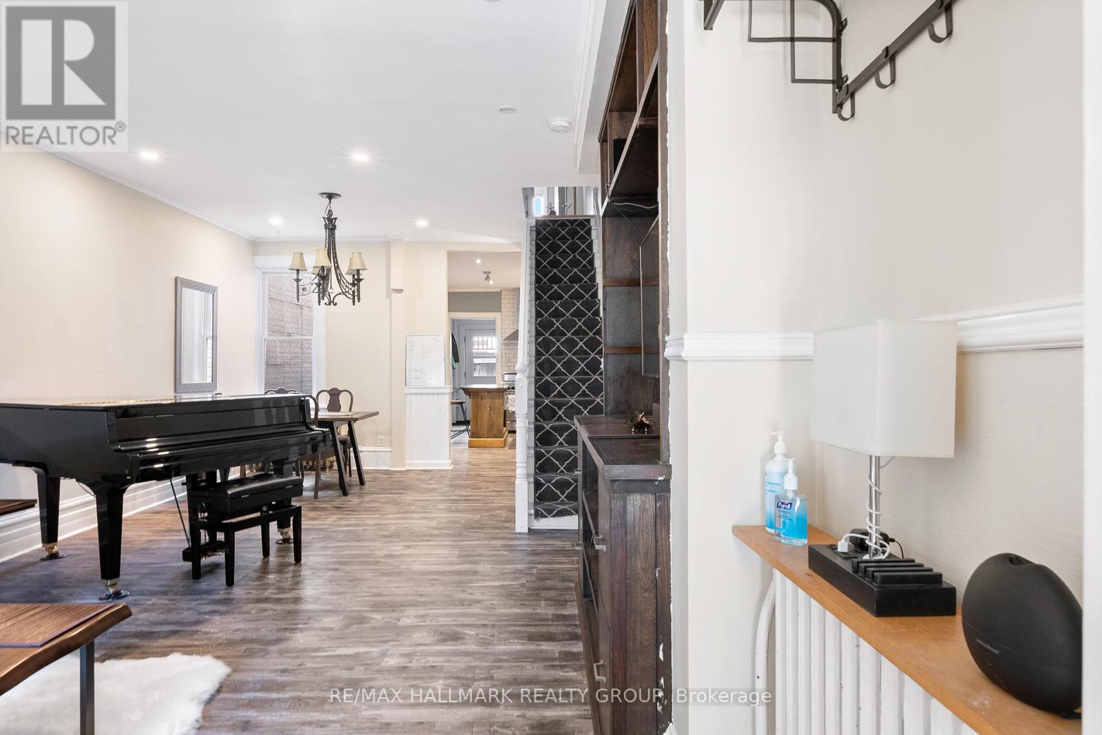 Welcome to 181 Guigues Avenue, a beautifully updated turn-of-the-century home tucked away on a quiet street in the heart of Lower Town. This charming property seamlessly blends historic character with modern comfort, offering high ceilings, thoughtful upgrades, and a private urban backyard retreat plus rare two-car parking. The main floor features a stylish living area with a custom built-in entertainment unit and pot lighting throughout, flowing into a bright, functional kitchen with stainless steel appliances, a gas stove, butcher block countertops, and a classic subway tile backsplash. Upstairs, original hardwood flooring adds warmth and authenticity. The spacious primary suite includes a generous closet and a spa-inspired ensuite with a glass stand-up shower. Two additional bedrooms, a full bath with heated floors, and convenient second-floor laundry complete this level. A large storage room in the basement provides extra utility space. This home is ideally located just steps from the ByWard Market, Rideau Canal, Global Affairs Canada, and countless dining, shopping, and cultural amenities. Whether you're commuting downtown or enjoying a walk through nearby parks and paths, the location offers unmatched access and convenience in one of Ottawa's most vibrant neighbourhoods. 24 hour irrevocable on all offers. (id:58075)