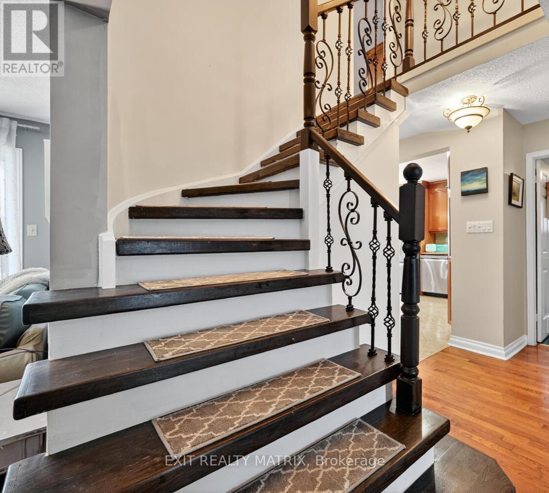 Welcome to this beautifully maintained 3-bed, 2.5-bath detached home in the heart of Katimavik-one of Kanata's most loved family neighbourhoods. The main level offers warm hardwood and tile flooring, along with a bright, inviting kitchen featuring a centre island, stainless steel appliances, wonderful natural light, and a spacious eating area overlooking your private backyard oasis. Patio doors lead to a serene outdoor space complete with a deck, above-ground pool, hot tub, and pool shed. The living room is perfect for cozy nights in and offers convenient direct access to the backyard. A formal dining room provides an ideal space for hosting family and friends, and the main-floor laundry adds everyday convenience.The second level has been thoughtfully designed to promote relaxation, showcasing beautiful barn-door-style closets in the spacious primary bedroom, a modernized 5-piece ensuite, two additional bedrooms, and a full main bath. The finished lower level adds even more versatility-perfect for a family room, home office, or hobby space.Recent upgrades include: Roof (2015), Furnace (2018), Kitchen window (2023), Hot water tank (2019), Ensuite (2023), Central vac (2021), Second-floor stairs & flooring (2025), Pool pump & filter (2022). Close to excellent schools, parks, transit, and everyday amenities. A wonderful opportunity to settle into a truly welcoming Kanata location. (id:58075)
