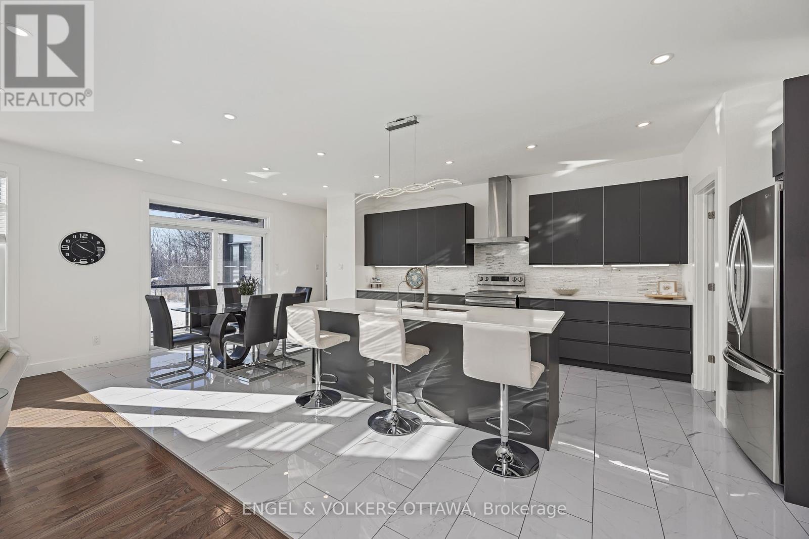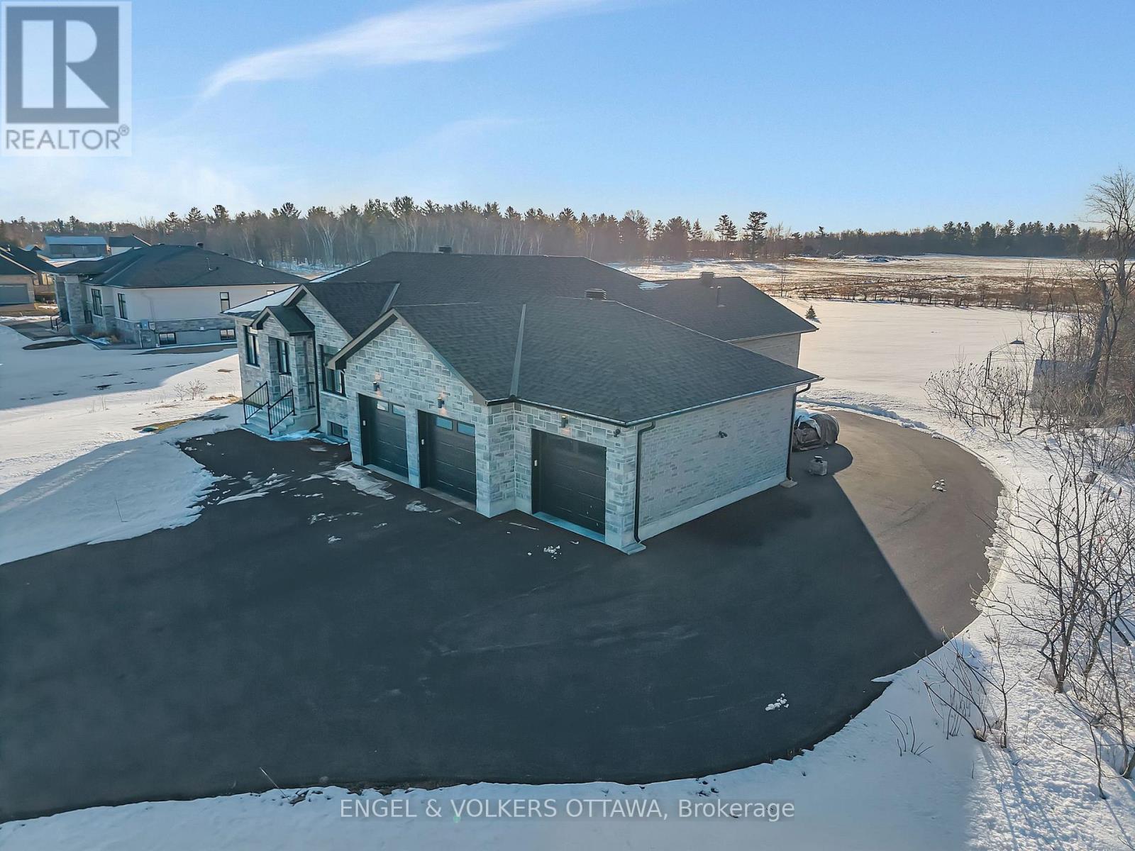 Discover the pinnacle of luxury living in this stunning, like-new custom bungalow, perfectly positioned on a private 2.3-acre estate in one of Kanata's most desirable locations. With no rear neighbours and exceptional design throughout, this residence offers the ultimate blend of elegance, comfort, and multi-generational functionality. From the moment you arrive, the home impresses with striking curb appeal, an oversized triple-car garage, and an extended driveway leading to a fully self-contained walk-out in-law suite-designed for privacy and convenience. Step inside to a sun-filled, open-concept main level crafted for sophisticated entertaining. The chef-inspired kitchen is a true showpiece, featuring a grand island, granite countertops, premium stainless steel appliances, and a walk-in pantry, seamlessly flowing into the inviting family room with a cozy fireplace. The primary bedroom retreat overlooks the serene backyard and offers a spa-like ensuite and an expansive walk-in closet. Two additional bedrooms are generously sized and filled with natural light. The main level also includes a full bathroom, powder room, versatile nook spaces, and a functional mudroom with laundry and direct garage access. The fully equipped in-law suite is a standout feature on the lower level, offering its own private entrance via the garage, 9-foot ceilings, and a walkout patio. It includes three spacious bedrooms, two full bathrooms, a dedicated office, a cozy fireplace, and a luxurious primary suite with its own ensuite and walk-in closet. The beautifully appointed kitchen makes it perfect for independent living or extended family. The bright lower level offers abundant storage and enhanced soundproofing with concrete construction, elevating comfort and privacy throughout. This thoughtfully designed estate is the epitome of refined, multi-generational luxury living-a rare offering that truly has it all. A must-see! (id:58075)
