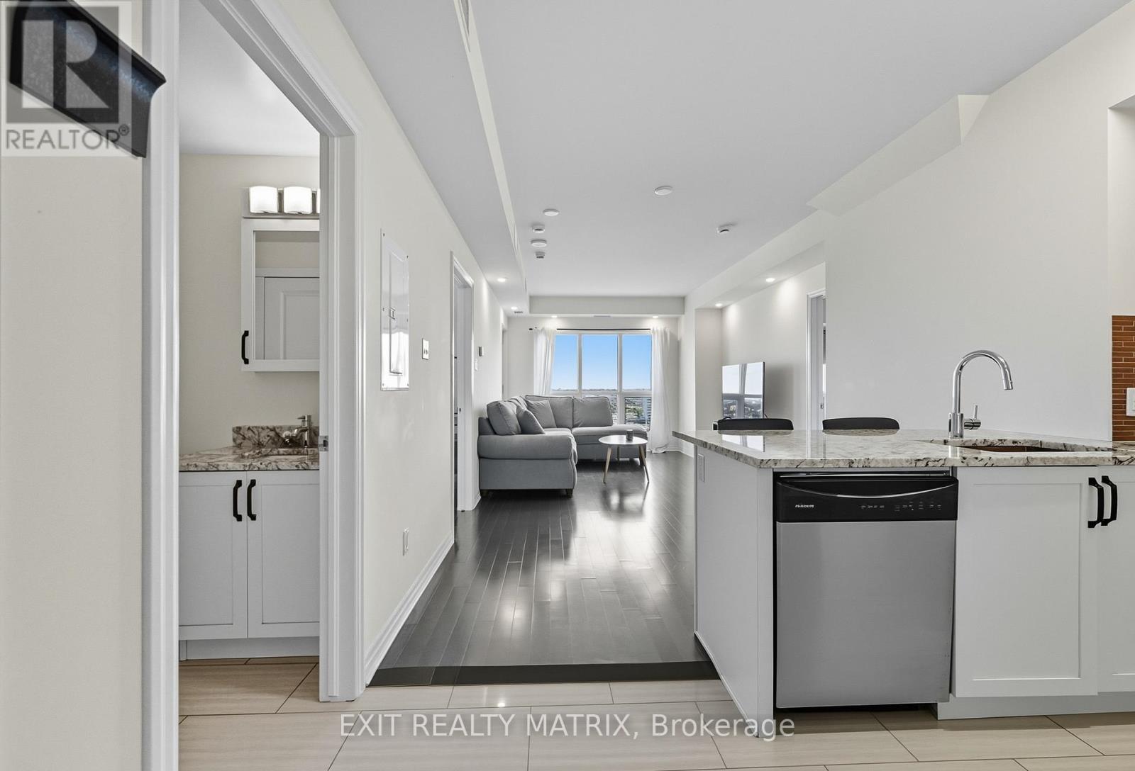 Welcome to Unit 2803 at 195 Besserer Street - a 960 sq. ft. penthouse suite with beautiful city views and the rare advantage of no neighbours above. This 2 bedroom, 2 bathroom unit is offered fully furnished and move-in ready, thoughtfully styled with quality pieces including a king bed and frame, large sectional sofa, Samsung flat-screen TV, desk and office chair, as well as dishes and cutlery, etc.The modern kitchen features granite countertops and is complemented by upgraded, top-quality appliances throughout, including the refrigerator, microwave, washer, and dryer. The open-concept living and dining area is bright and inviting, finished with hardwood flooring throughout. The primary bedroom includes a spacious 4 piece ensuite, while the second bedroom offers flexibility as a guest room or home office.Additional highlights include in-suite laundry, a private balcony, and access to premium building amenities such as an indoor pool, fitness centre, party room, and outdoor terrace with BBQs. Ideally located steps from the University of Ottawa, grocery stores, LCBO, and the ByWard Market. Furniture flexibility is available - tenants may choose to keep select pieces, remove some, or rent the unit unfurnished if preferred. Rent includes water, heat, air conditioning, and a storage locker. One premium underground parking space is available for $150/month. (id:58075)
