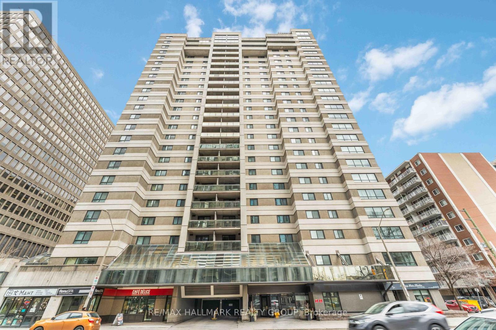Welcome to Kent Towers. This nicely updated 2-bedroom, 1-bathroom condo is situated on the Southeast corner of the 18th floor with views overlooking Centretown and the Steeple of Saint Patrick's Basilica - one of Ottawa's historical landmarks! With a functional floorplan and hardwood flooring throughout, this bright unit offers an abundance of natural light. The updated kitchen features shaker-style cabinetry, tile flooring, and granite countertops. Enjoy your private balcony-perfect for morning coffee or relaxing at the end of the day. The spacious primary bedroom includes a double closet and walk-in storage room. Additional features include in-unit laundry, central A/C, assigned underground parking and storage locker. Residents enjoy excellent amenities including 24/7 concierge and security, indoor pool, hot tub, sauna, gym, and library, plus a coffee shop and convenience store in the building. Ideally located; steps to the LRT, restaurants, shopping, Parliament, and the Ottawa River - live downtown!!! Make this great condo your home today! (id:58075)