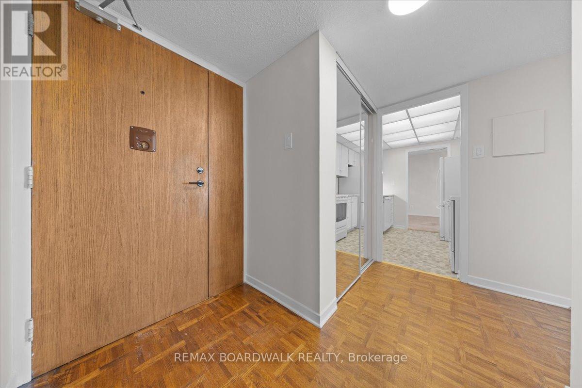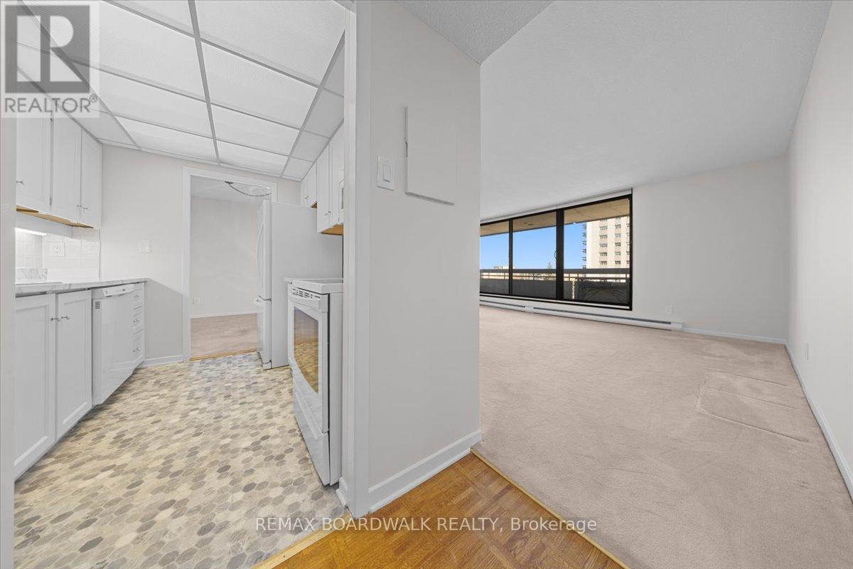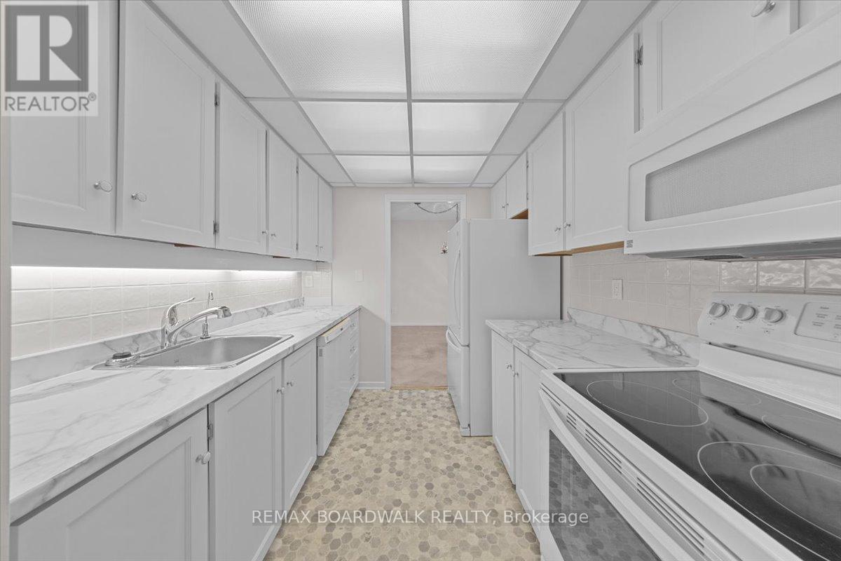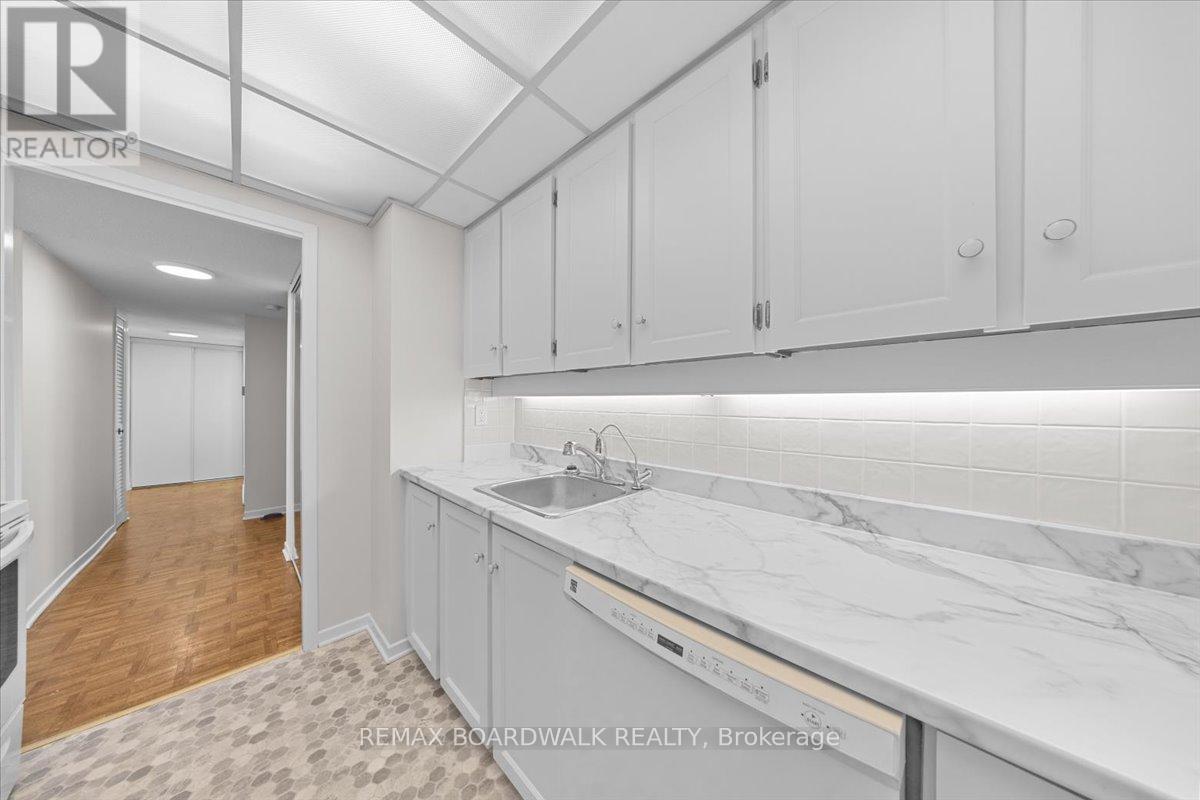 Positioned along the edge of the Rideau Canal, this well-composed two-bedroom, two-bathroom residence is defined by its southern exposure & strong visual connection to the surrounding landscape. The interior layout is organized w/clarity & function. A defined foyer, complete w/a full-width mirrored closet, transitions into a linear galley kitchen featuring shaker-style white cabinetry, tile backsplash, valance lighting, & an oversized sink. The adjacent dining area is anchored by a central chandelier, establishing a formal yet integrated entertaining space. The principal living area is articulated by three oversized patio doors, introducing natural light & extending the interior to an open balcony w/unobstructed canal views. This architectural continuity enhances both spatial perception & daily living experience. A distinct bedroom wing provides separation & privacy, incorporating a walk-in storage/pantry area & dedicated linen storage. The primary suite is oriented to the south, offering consistent natural light, double closets, & a four-piece ensuite defined by large-format wall tile, a custom vanity w/granite countertop, & integrated lighting. The secondary bedroom is configured w/a built-in Murphy bed & millwork, allowing for flexible use as guest accommodation or workspace. The main bathroom is appointed w/a glass-enclosed shower, oversized ceramic tile, & a rain-style fixture w/European faucet. Building amenities extend the living environment, including indoor pool, sauna, fitness & workshop spaces, library, music & billiards rooms, party facilities, & a landscaped outdoor terrace w/barbecue & herb garden. Pet-friendly. 24 hr notice on all offers. (id:58075)