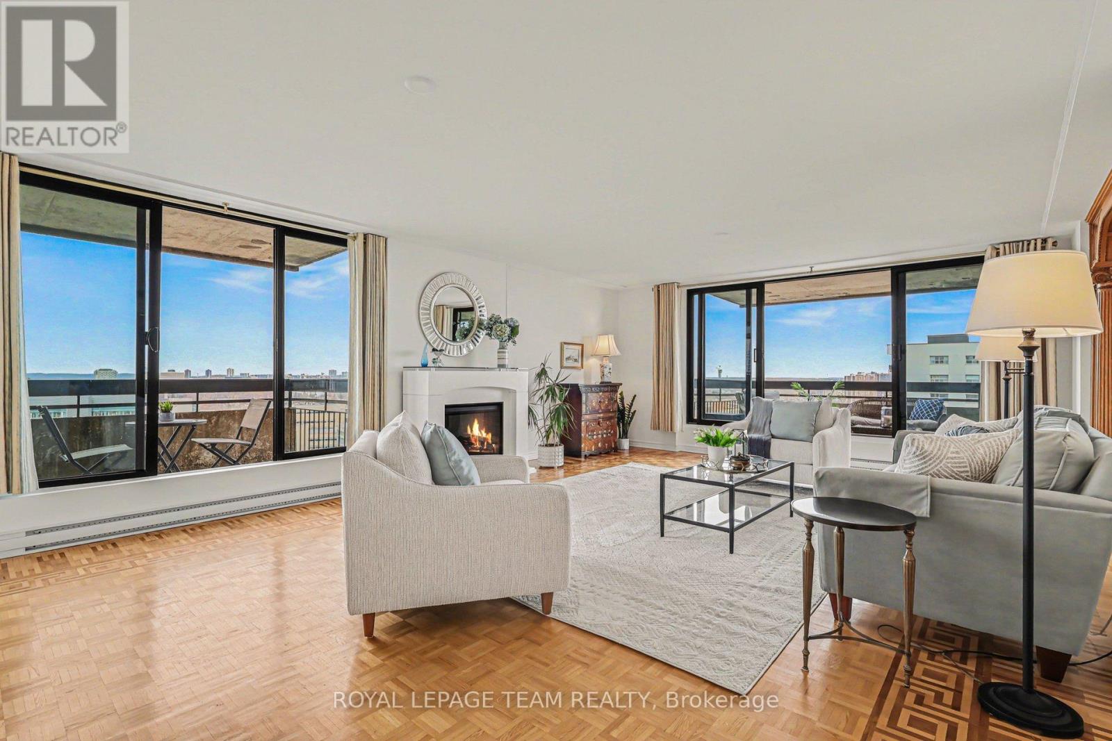 Experience Luxury living in this large Canal-facing condo on the South-East corner of prestigious "20 The Driveway" with breathtaking views of the Rideau Canal, Downtown, and areas South. Perfectly located in the Golden Triangle with easy access to great restaurants, the NAC, University of Ottawa, The Byward Market and Parliament Hill. Originally occupied by the Building's Architect, this unit was given special attention evident in the custom light oak and inlayed dark wood flooring, masterful woodworking details and extra large exclusive parking spot. 2 balconies expand the living space with stunning panoramic views. There is close to 1500 sq ft more area indoors with 2 generous bedrooms, full ensuite bath, full main bath, bright kitchen, in-suite laundry and entertainment-sized living and dining rooms.Amenities: Exercise Room, Party Room/Meeting Room, Indoor Pool, One Guest Suite, Sauna, Game/Pool Room, Library, Music room, Outdoor patio with barbeque. This is it! Location. Lifestyle. Home! (id:58075)