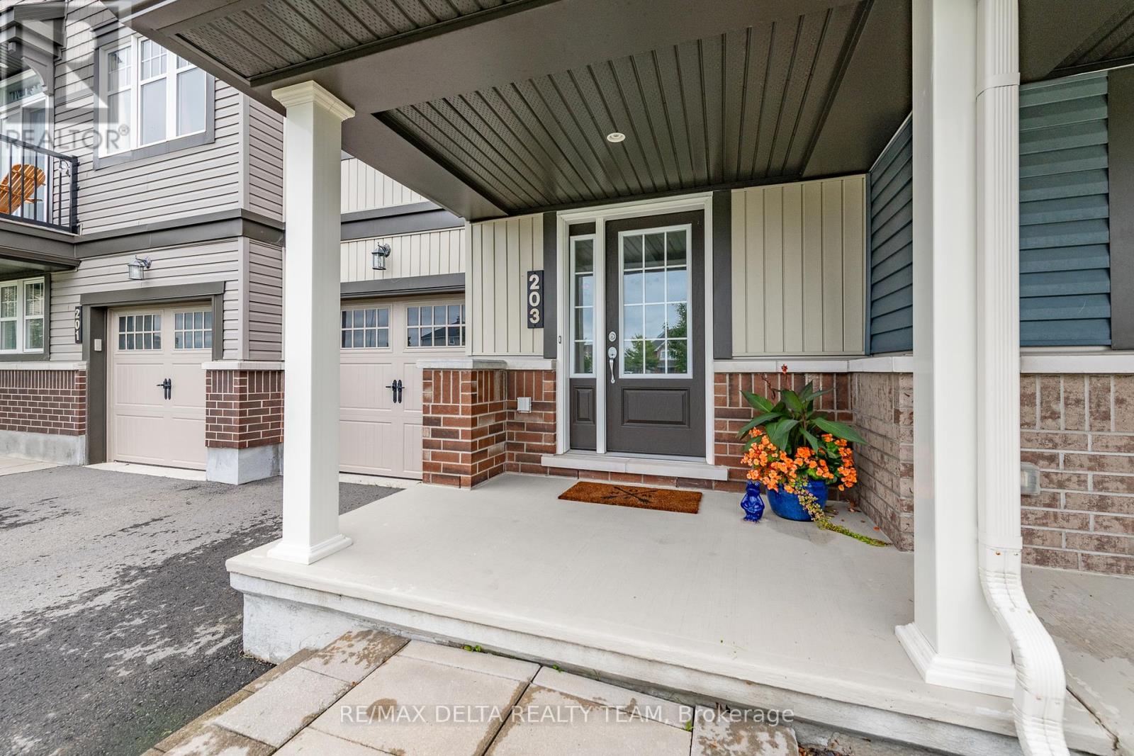 - Brick, Vinyl siding