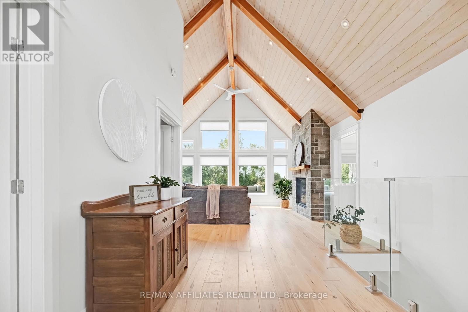 Welcome to 205 Westar Farm Way! This custom built Linwood Home sits on acreage in an estate community where elegance meets country living. Step inside your dream home, where every detail whispers quality craftsmanship from the soaring 16 foot vaulted pine ceilings to the rich Hickory flooring, to the Douglas Fir beams that frame the space with rustic elegance. The open-concept design, paired with expansive windows, fills the home with natural light creating a seamless connection between indoors and the breathtaking beauty outside.The gourmet kitchen is a chefs paradise with high-end finishes, premium appliances, and a generous center island, perfect for cooking, gathering, and making memories. The primary suite is a true retreat. With a spacious ensuite, his-and-hers walk-in closets, and private access to your own backyard deck- its a space made for pure relaxation. With a fantastic flex room on the main level to make your own, whether its an additional bedroom, office, play room, the possibilities are endless! And that is just the beginning..the walkout, with its bright windows and 9 foot ceilings, offers two comfortable bedrooms, a large family room and open area- a perfect space for an in-law suite or for children to have their own living space. And lets not forget the luxurious spa-like bathroom; its deep soaker tub makes it a great evening escape. Not only will you love the house but you'll love the easy commute and convenience of being only minutes from Stittsville, Kanata and both Highway 7 and the 417. Electric vehicle? Perfect, it already comes equipped with an EV charger. Whether you're hosting friends, sipping coffee on the deck, tending to the garden, or simply soaking up nature, this property offers a sanctuary both inside and out. Some homes just feel different and the moment you pull into the driveway, you'll know this is one of them! (id:58075)