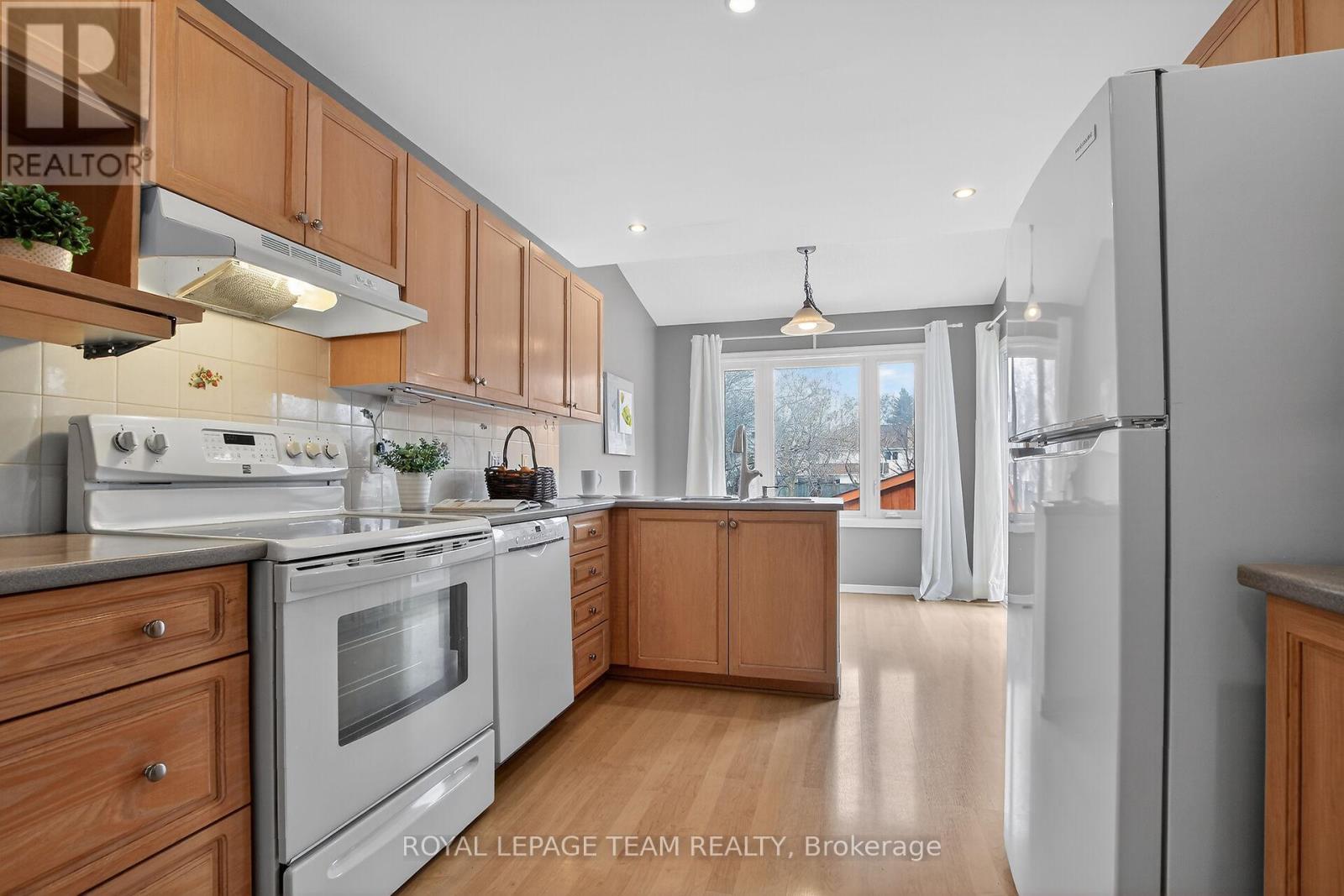 Lovely Holitzner built end unit townhome, located on a private court and on an amazing large lot with mature trees, in the central neighborhood of Katimavik. Three bedrooms, three baths, open plan living & dining room, eat-in kitchen with patio door to composite deck plus finished lower level with gas fireplace. Bonus free standing building/coach house (2022) used as an office, could also be a hobby room. Insulated, power, recessed lighting, engineered hardwood flooring (carpet tile on top).Private enlarged double driveway (4 car parking) with interlock near garage & interlock walkway to covered front porch. Tiled foyer and reception area, has a cut out with view of living room, double closet and entry to the garage is close by. Open living and dining room with updated laminate flooring and several updated windows, fantastic space for entertaining. Kitchen has many tall cabinets, tile backsplash, double stainless steel sink, updated faucet & appliances are included. Eating area in kitchen has vaulted ceiling and recessed lighting and beautiful views of yard. Patio door opens onto the composite deck, great for barbecues and relaxing. Powder room has newer vanity, sink and mirror. Second level with three good-sized bedrooms and two full baths. The primary bedroom has a big window with views of the court and a spacious walk-in closet. The ensuite bath has a vanity with sink, medicine cabinet, glass shelf and double shower with seat. Two more bedrooms with neutral decor, double closets, big windows and overhead lights. The linen closet and full bath is conveniently close by. The main bath has a combined tub and shower with tile surround and vanity with sink and medicine cabinet. Lower level with spacious family room, office area, plus a library area, laundry & utility room. Walk to many parks, schools, shops and Leisure Center. Minutes to bus on Castlefrank & convenient access to 417. Updated windows (2018), garage door & more. 24 hours irrevocable on all offers. (id:58075)