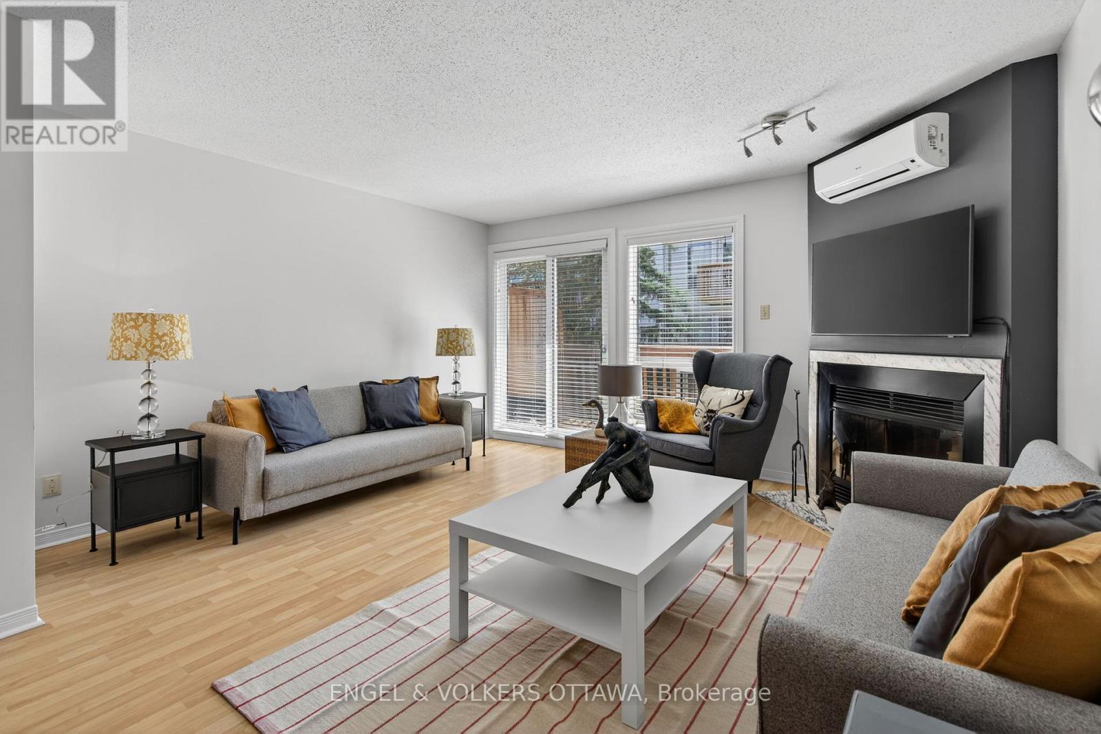 Conveniently located in Hunt Club Park, this meticulously maintained 2-bedroom, 2-bathroom stacked condo in the upper unit has a bright, functional layout. The main level features a bright, spacious open-concept living and dining area with light-toned hardwood flooring, a gas fireplace, and a large rear-facing glass door that leads to the private balcony. Just past the dining area, the U-shaped kitchen area is thoughtfully designed with ample counter space, extensive cabinetry, and a convenient breakfast nook with south-facing windows. Upstairs, a skylight continues the bright and airy feel of this unit. The primary bedroom features direct access to a private balcony and a full wall of closets for ample storage, while the second bedroom is ideal for family, guests, or a home office. A centrally located full bathroom includes a combined tub and shower, a spacious vanity, and neutral finishes. This move-in-ready unit is in close proximity to a wide range of amenities along Hunt Club Rd, Walkley Rd, and at South Keys, which offer a range of shopping centres, grocery stores, restaurants, and everyday essentials. The nearby parks, network of walking paths, and close proximity to the Greenbelt are excellent opportunities to enjoy year-round outdoor activities. Convenient commuting options, including nearby Highway 417 and multiple public transit options, make this the ideal home for young professionals seeking a low-maintenance, convenient home! (id:58075)