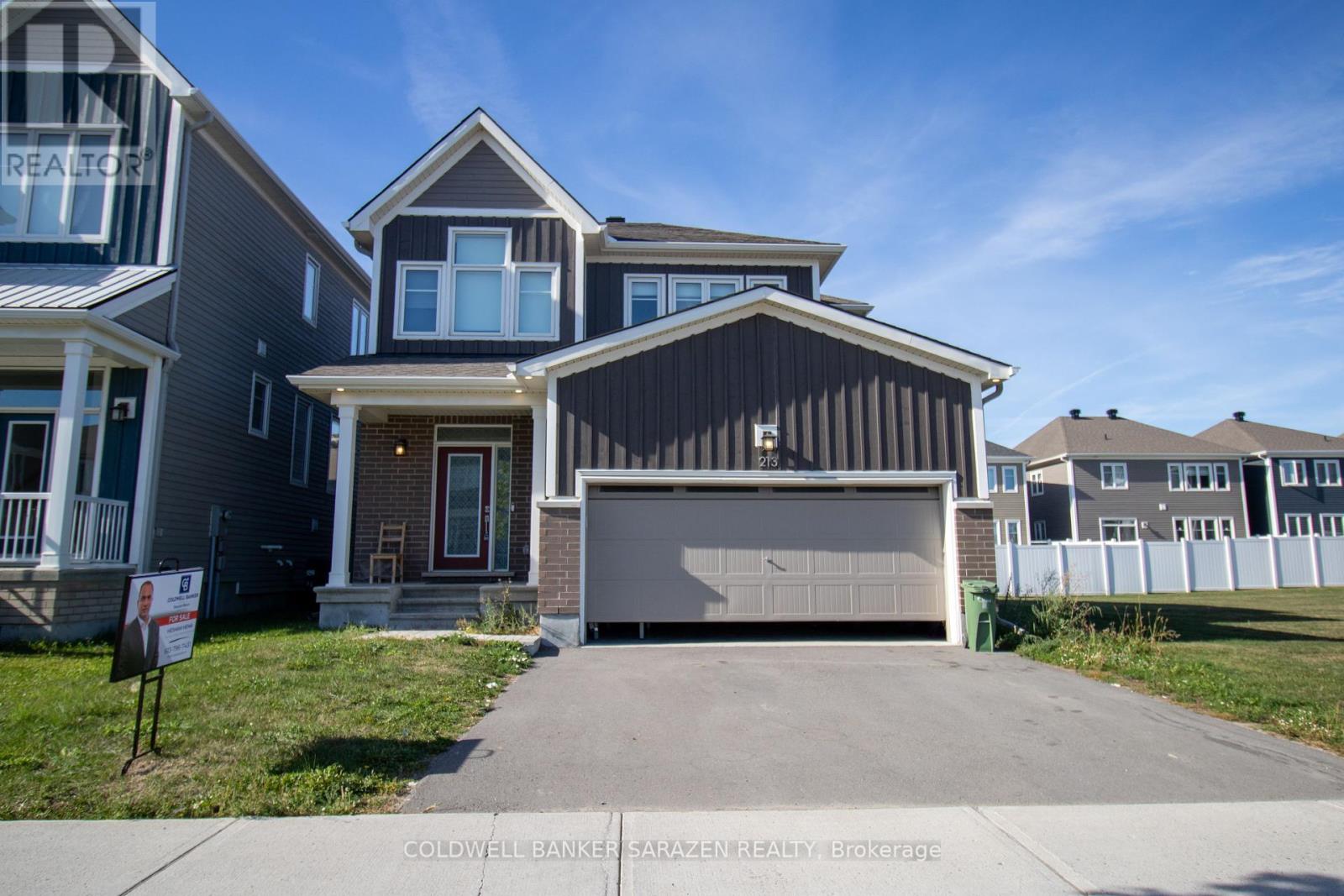 Welcome to 213 Meynell Rd in Richmond Meadows family-friendly Fox Run community. This 2021-built modern single-family home offers 4 bedrooms, 3 full baths + powder room, a bright open-concept living/dining area with large windows. The chef-inspired kitchen features a large island, granite counters, custom pantry, chimney hood, stainless steel appliances, and garden doors leading to the backyard. Upstairs offers bright bedrooms, while the fully finished basement includes a cozy 3-piece bath with stand-up massage shower. Extra features include a fully insulated garage with 40Amp EV outlet (keeps upstairs warm in winter), duct line for future solar panels (ideal southern exposure), soffit lighting for curb appeal, and doorbell camera. Enjoy nearby parks, pond trails, local shops, dining, and easy access to Kanata & Barrhaven. (id:58075)