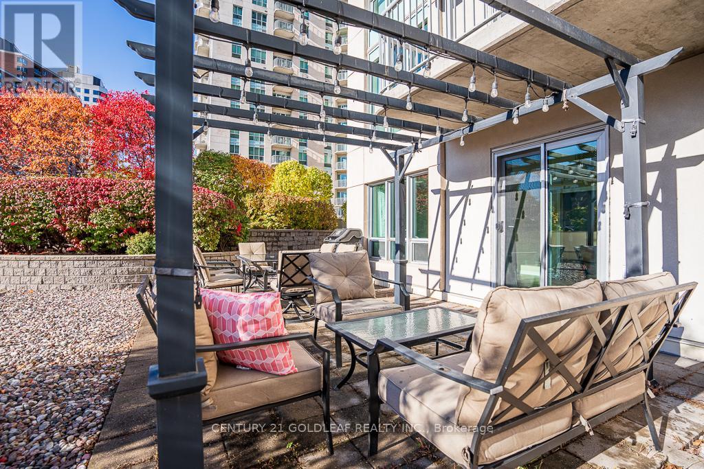 This immaculate two bedroom condo that lives like. bungalow, steps from the bustling Byward market and the Rideau center, is a rare find. Recently renovated with rich, brown hardwood floors and painted in a warm inviting tone this one of a kind condo has a private 300 square foot (approx.) south facing patio with pergola and treed landscaping accessed through patio doors off the bright and sunny open concept living/dining room. Equipped with a BBQ, this is one of the few units that allow propane BBQs! The kitchen is open to the dining rooms wall of south facing windows and features granite countertops, modern pot lighting, ample storage and stainless steel appliances. This corner unit has windows on all three sides bathing the space in natural light. The master bedroom, located on the far end of the living space has a private four piece en-suite bath and ample storage. The second bedroom is on the foyer side with access to another full bathroom and storage, The bedrooms are separated by the generously sized living space, perfect for roommates. All of the windows overlook the expansive patio creating the feel of living in. bungalow on. private yard! Indoor pool, sauna, exercise room, 24 hour concierge/security, outside common patio area, theatre room, party room & more! One underground parking. Enjoy being able to walk to everything downtown has to offer. (id:58075)