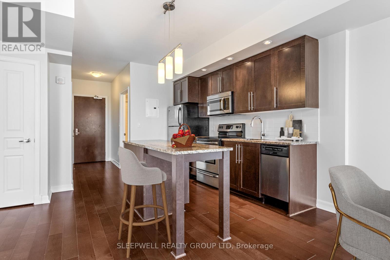 Discover urban living at its finest in this bright and modern 1-bedroom condo, perfectly situated in the heart of downtown Ottawa. This thoughtfully designed unit features hardwood floors throughout, a spacious open-concept living and dining area, and a well-sized bedroom with impressive floor-to-ceiling windows that flood the space with natural light. The good-sized balcony extends your living space outdoors, offering a private retreat to enjoy morning coffee or unwind in the evening. The kitchen is equipped with stainless steel appliances, granite countertops, and a functional island, making it ideal for cooking, entertaining, or working from home. Additional highlights include in-unit laundry, ample storage, and a smart layout that maximizes both comfort and functionality. The building offers amenities including a terrace with BBQ's and a stylish party room. Located just steps from the ByWard Market, University of Ottawa, Rideau Centre, LRT, shops, and restaurants, this condo offers the perfect blend of convenience and lifestyle. Ideal for first-time buyers, professionals, or investors looking for a prime downtown location. (id:58075)