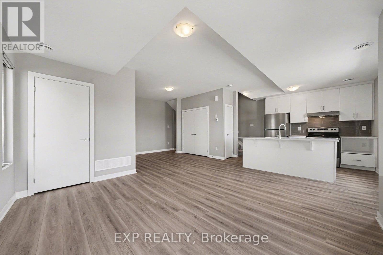 Welcome to this brand-new 3-storey townhouse in the heart of Orléans. Offering over 1,000 sq. ft., this modern 2-bedroom, 2.5-bathroom home features an open-concept layout with large windows and a carpet-free design.The stylish kitchen includes stainless steel appliances, ample cabinetry, and a breakfast bar island, flowing into a bright living and dining area with access to a private balcony. Upstairs offers two spacious bedrooms, a full bathroom, and convenient in-unit laundry, plus a main floor powder room.Located in a family-friendly neighbourhood close to parks, schools, shops, and transit-perfect for professionals, couples, or small families seeking comfort and convenience (id:58075)