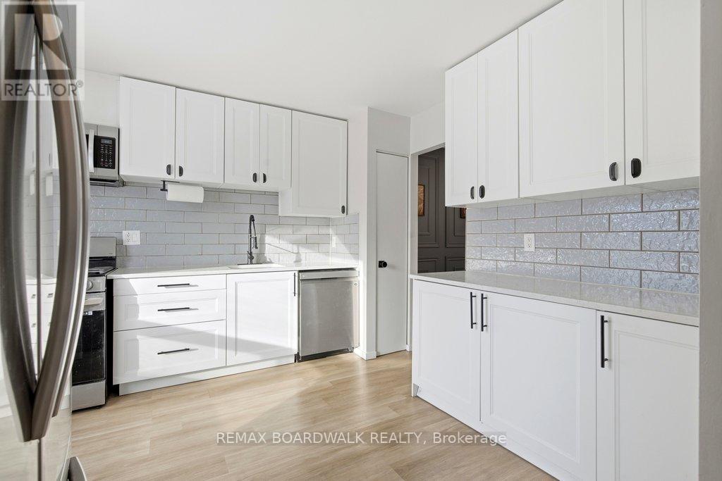 Welcome to Rondel Street in the heart of Blackburn Hamlet! A sought-after Costain Homes model offers one of the builder's most popular townhome layouts, featuring a bright, open-concept main floor filled with natural light. This end-unit carriage home has been extensively upgraded, showcasing crisp white cabinetry, stone countertops, upgraded flooring, and custom millwork that beautifully defines the living and dining areas. The finished basement, complete with new carpet (2026), provides the perfect family room or teenage retreat. Step outside to a fully fenced, low-maintenance backyard where you can relax or entertain on the expansive 200+ sq. ft. deck or unwind on the interlock patio (15X15) with a full gazebo. Additional highlights include a one-car garage equipped with a Stage 2 EV charger. Ideally located within walking distance to shopping, transit, schools, parks, the public library, and the community swimming pool, this home combines comfort, convenience, and thoughtful upgrades in a fantastic neighbourhood. (id:58075)