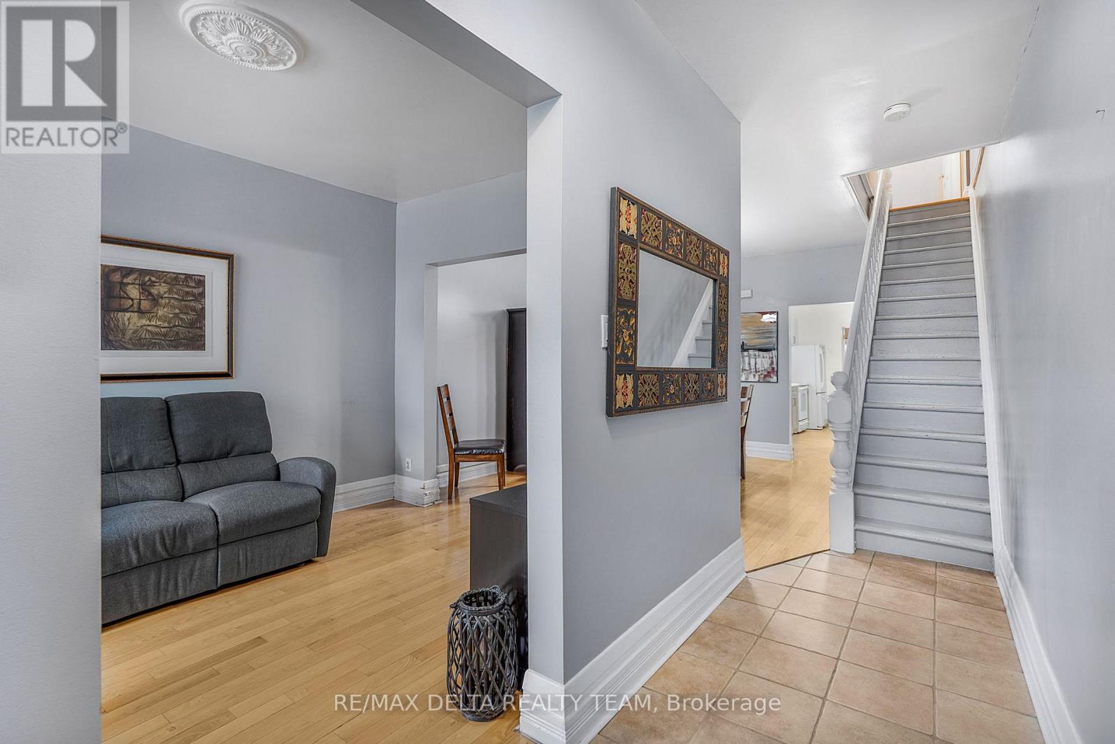 Welcome to this beautifully maintained 3-bedroom row townhouse, perfectly positioned in the vibrant heart of the city. Offering a blend of comfort, style, and convenience, this home is ideal for urban dwellers who value space and easy access to local amenities. The main floor features rich hardwood flooring that flows seamlessly from the spacious living room into the dining area and functional kitchen, creating a warm and inviting atmosphere. The kitchen is thoughtfully designed with cabinet organizers, pull-out drawers, and a built-in desk nook perfect for staying organized. Adjacent to the kitchen, a cozy den opens onto a fully fenced, low-maintenance back terrace (33' x 16'), providing a private outdoor retreat ideal for relaxing or entertaining. Upstairs, you'll find three generously sized bedrooms and a renovated full bathroom, offering plenty of space for families or guests. The dry basement adds extra value with a laundry area, ample storage, and a dedicated utility room. Additional features include street permit parking, a roof replaced in 2022, a bathroom renovation in 2021, a furnace updated in 2012 and updated windows throughout. (id:58075)