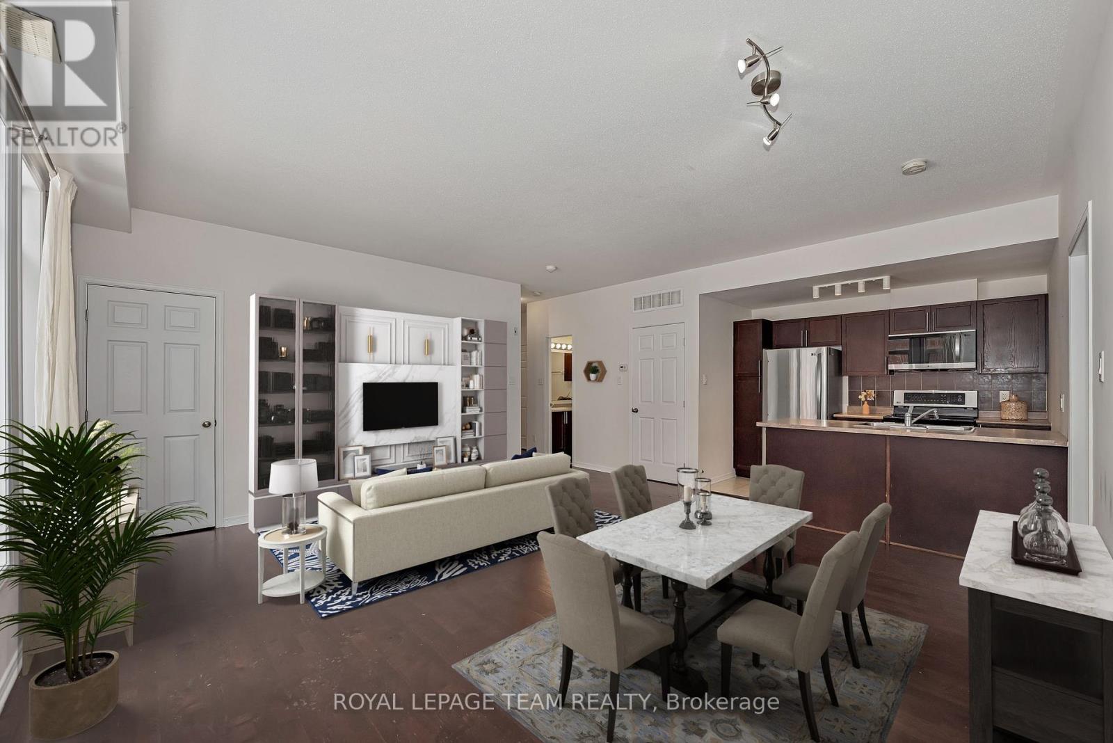 This bright and spacious 2 bedroom, 2 bathroom condo offers the perfect mix of comfort, value, and location. The open-concept layout features tall ceilings, oversized windows, and hardwood flooring throughout the main living area. The kitchen is equipped with bar seating, a double sink, and rich dark cabinetry overlooking the spacious Living/Dining Room. The primary bedroom boasts a walk-in closet and a private ensuite, while the generous second bedroom includes a spacious closet. Clean and move-in ready, this home also comes with a rare wrap-around terrace and gated garden area, perfect for entertaining or enjoying a quiet morning coffee. Parking and one of the largest available storage lockers are included, along with convenient guest parking. Just minutes from downtown, steps to the Rideau River pathways, and surrounded by the trendy shops and restaurants of Beechwood Village, this condo has it all. This condo is pet friendly. Come and see it! Condo Corporation has a healthy reserve fund and well managed. Quick occupancy available. (id:58075)