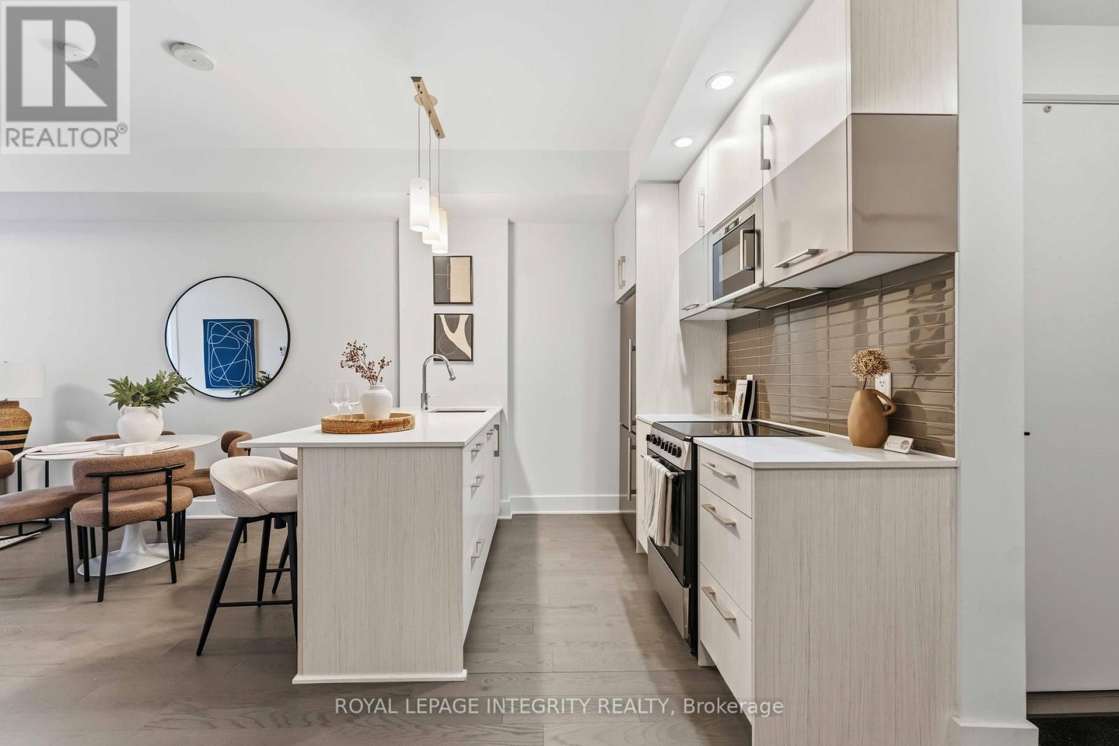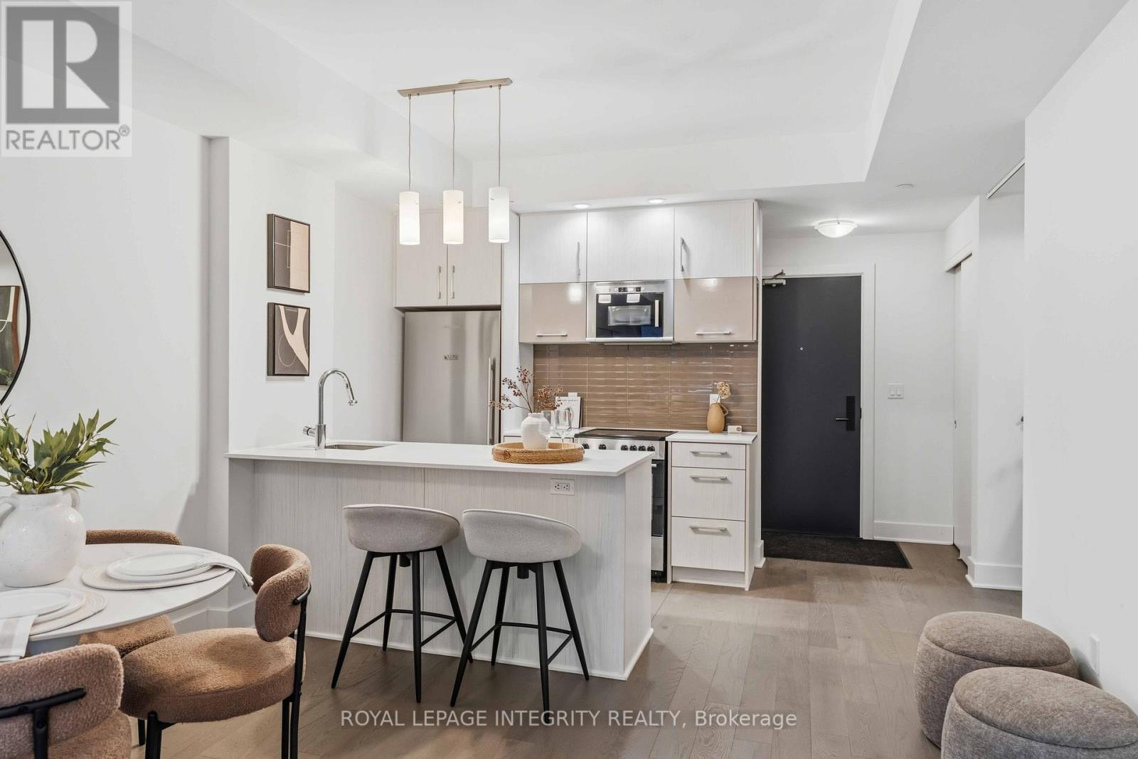 Welcome to Unit 1007 at 255 Bay St - where style and comfort come together in the heart of downtown Ottawa. This beautifully designed 1-bedroom + den suite stands out with a more generous layout than many comparable units in the building, offering enhanced comfort for both everyday living and entertaining. Step inside to a bright, open-concept design featuring elegant hardwood flooring and expansive windows that fill the home with natural light. The sleek kitchen is anchored by a spacious island with quartz countertops and stainless steel appliances-perfect for hosting or enjoying a quiet night in. The primary bedroom provides a relaxing retreat, while the versatile den offers flexibility as a private home office or guest space. A stylish full bathroom and convenient in-unit laundry complete the interior. This unit also includes owned underground parking and a storage locker for added convenience. The building's luxurious amenities are thoughtfully designed, spacious, and meticulously maintained. Enjoy the saltwater pool, sauna, and a fitness centre surrounded by panoramic city views. The terrace BBQ area offers the perfect setting for relaxing or entertaining above the skyline. Adding even more value, this pet-friendly building is a rare find among upscale downtown condos-allowing you to enjoy urban living without compromise. Located in one of downtown Ottawa's most desirable and secure pockets, you are just steps from everyday essentials. With the LRT station just a short walk away, commuting is effortless, while grocery stores, restaurants, and cafés are all within easy reach. Whether you're looking for a place to call home or a smart investment, this is a rare opportunity to own a more spacious, beautifully finished unit in a premium location. (id:58075)