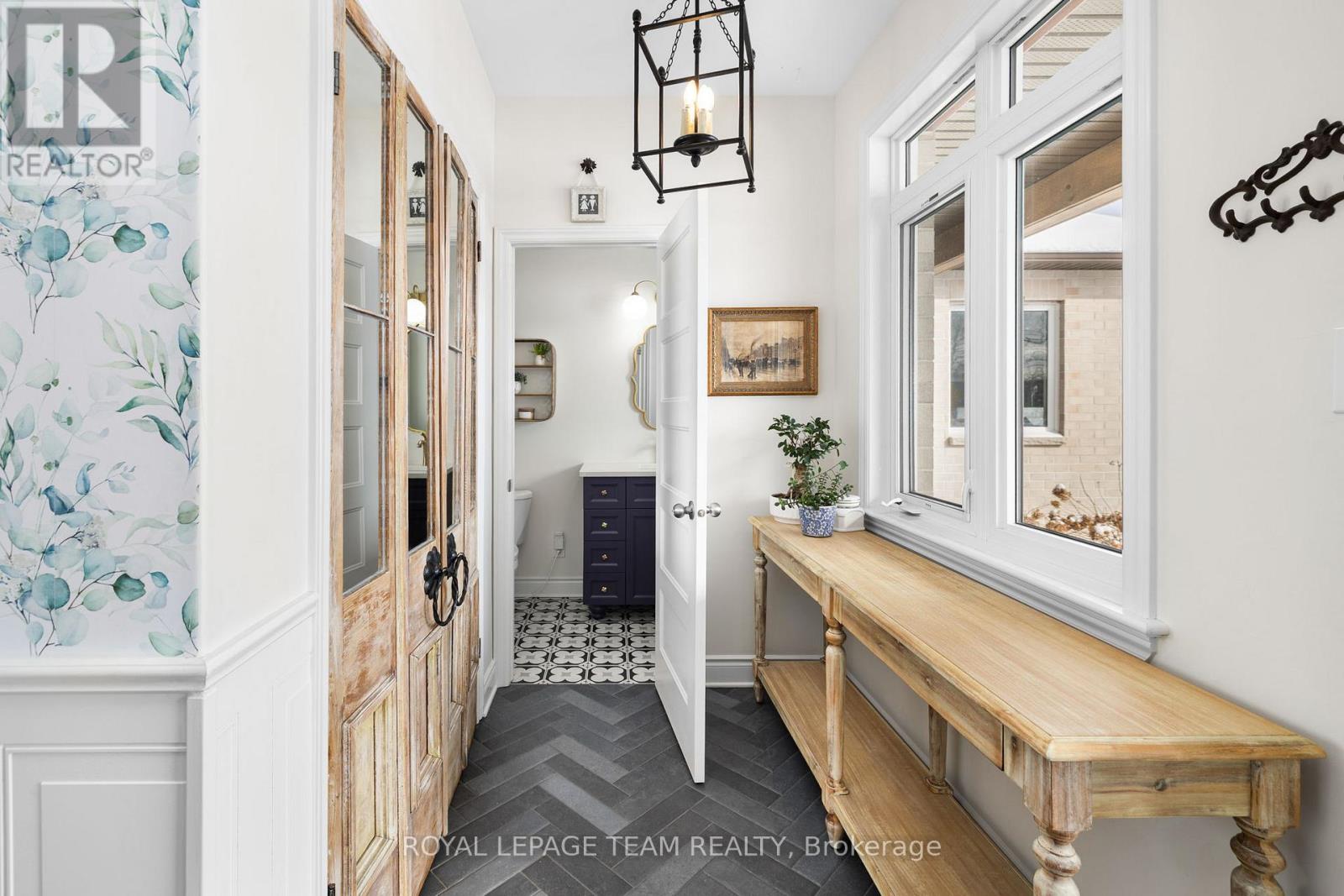 Welcome to 26 Synergy Way, an exceptional custom-built residence located in prestigious March Crest Estates. Nestled on over 2 private, treed acres in rural Kanata and backing onto open farmland, this property offers peaceful surroundings, and sweeping views of the Gatineau Hills. Built in 2018 by Grizzly Homes, this meticulously crafted home blends refined design, thoughtful functionality, and outstanding craftsmanship throughout. The main level features a bright, open-concept layout ideal for both everyday living and entertaining. A chef-inspired kitchen showcases quartz counters & backsplash, extra-tall stacked cabinetry, built-in microwave, pot filler, stainless steel appliances, and an impressive 10' x 5' island with extensive storage and seating. The dining area & vaulted great room offers designer lighting, pot lights, and a striking 12' real stone gas fireplace with reclaimed barn beam mantle. Sliding doors lead to a two-storey TREX composite deck with glass railings, perfect for enjoying panoramic views. Three bedrooms on the main level, including a stunning primary suite with vaulted ceilings, walk-in closet, and award-winning 5-piece ensuite with heated floors. A spacious mudroom/laundry area with built-ins offers convenient access to the heated triple-car garage. Wide-plank brushed white oak hardwood flooring throughout main level. The walk-out lower level includes a fully self-contained 1,600 sq.ft. in-law or nanny suite with two bedrooms, full kitchen, living room with electric fireplace, in-suite laundry, private garage entrance, access to a lower deck & park-like backyard. Additional unfinished space provides excellent storage. Extensive upgrades include an oversized paved driveway, Generlink 12,000W generator, irrigation system, landscaped gardens with mature trees & fruit plantings, firepit, shed, and meticulous ongoing maintenance. Stylish, versatile, and impeccably cared for, this one-of-a-kind home offers an extraordinary lifestyle opportunity. (id:58075)