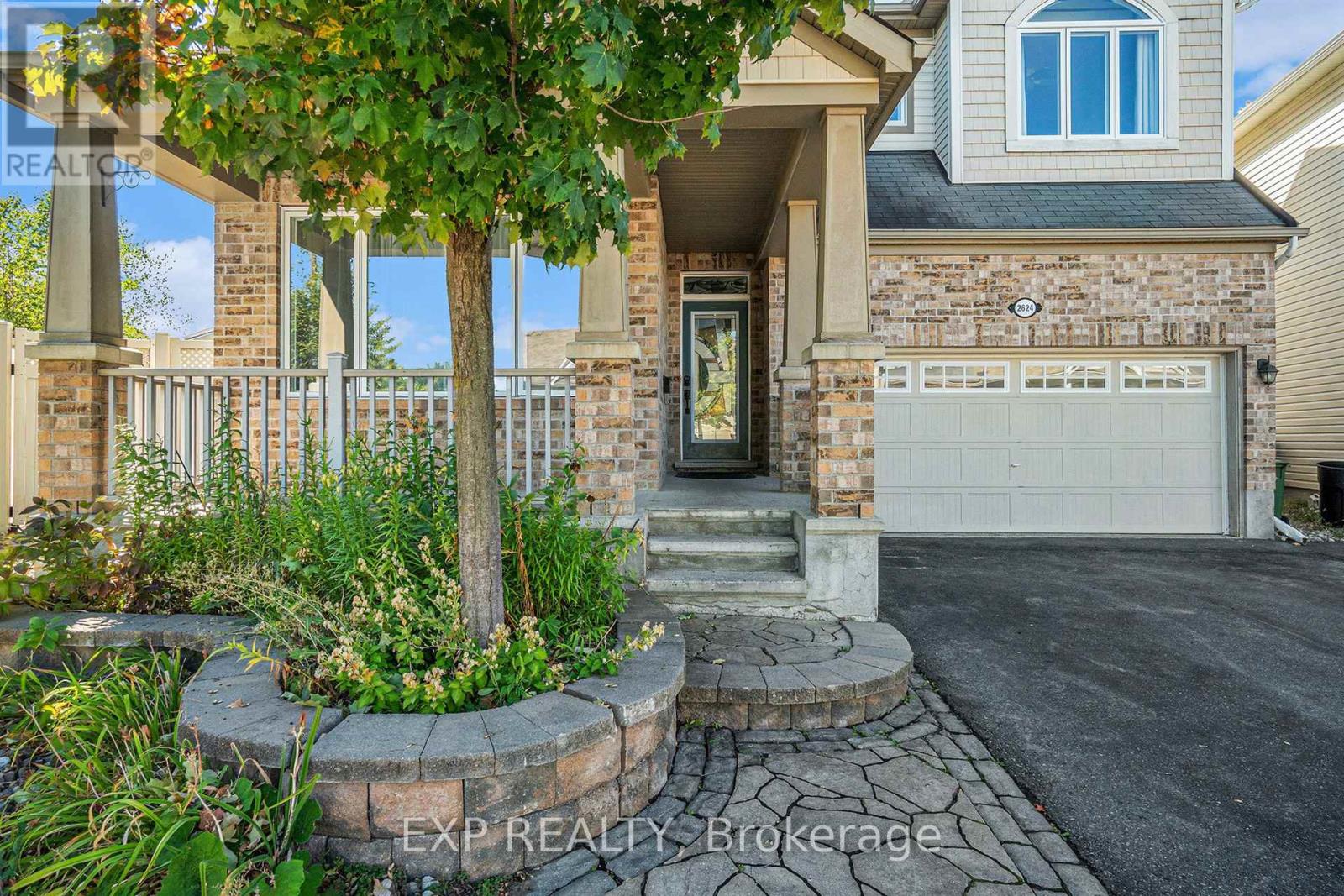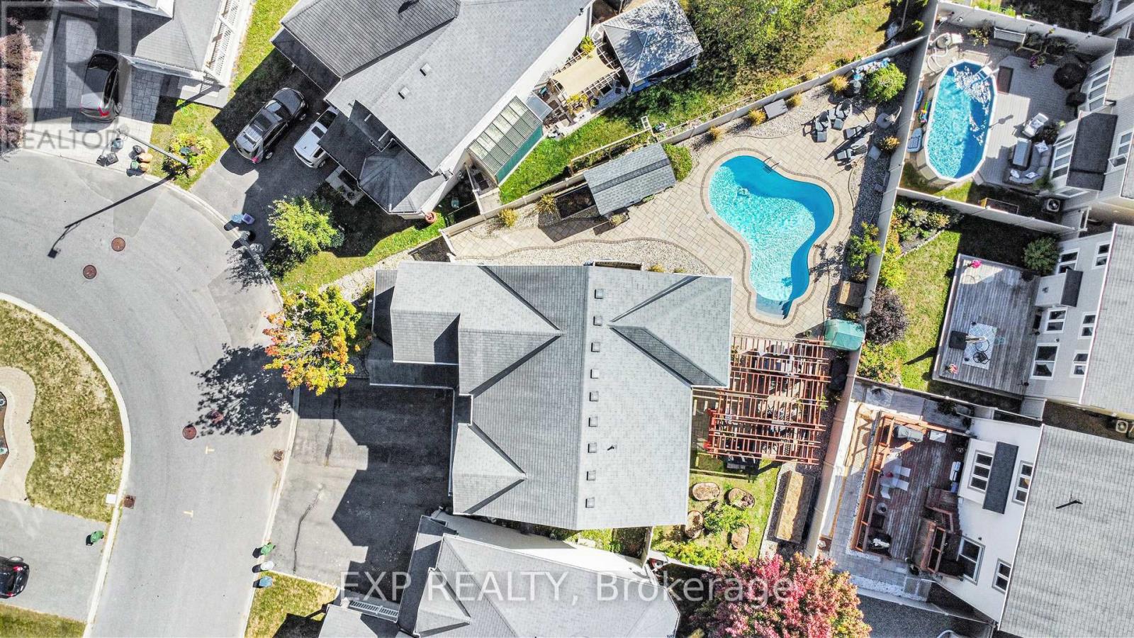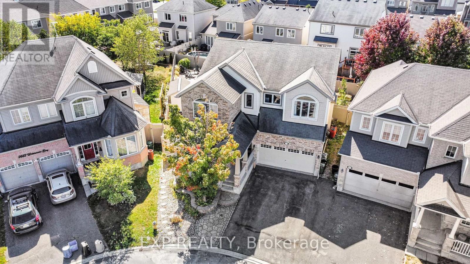 Welcome to this wonderful 4+1 bed, 3.5 bathroom home in one of Ottawa's most family-friendly neighbourhoods, close to parks, schools and everyday conveniences. Situated on a rare, oversized pie-shaped lot, this property offers incredible outdoor space and privacy not often found within the city! A beautifully landscaped front yard with decorative interlock walkway leads to a covered front porch and extended driveway, setting a warm and inviting tone as you arrive. Inside, the cozy front living room features a coffered ceiling and upgraded lighting. Large windows bring in plenty of natural light, while arched doorways and thoughtful design details give the home warmth and character. The kitchen features granite countertops, hardwood flooring, an extended island with seating, stainless steel appliances including a double oven, pot and pan drawers, tile backsplash, a walk-in pantry and abundant cabinetry finished with crown molding. A built-in desk nook and eat-in area add even more functionality to the space. Just off the kitchen, the family room offers a cozy gas fireplace, beautiful built-in storage and direct access to the backyard. Upstairs, the spacious primary bedroom includes a walk-in closet and a 4pc ensuite with soaker tub, standing glass shower and granite-topped vanity. Three additional bedrooms, a shared 4pc bath and convenient second-floor laundry complete this level. The fully finished basement is a standout feature, with a fifth bedroom, a large rec room or family space, a spa-like bathroom with glass shower, floating vanity, tile accents and extra storage in the utility room perfect for guests or extended family. Step outside to your backyard oasis - a stunning inground pool surrounded by thoughtful interlock, lush landscaping, PVC fencing, a pergola with patio beneath, pool shed and space for a vegetable garden. Located near Minto Rec Centre, top schools, Costco, shops, trails, public transit and so much more! Schedule your private showing today! (id:58075)