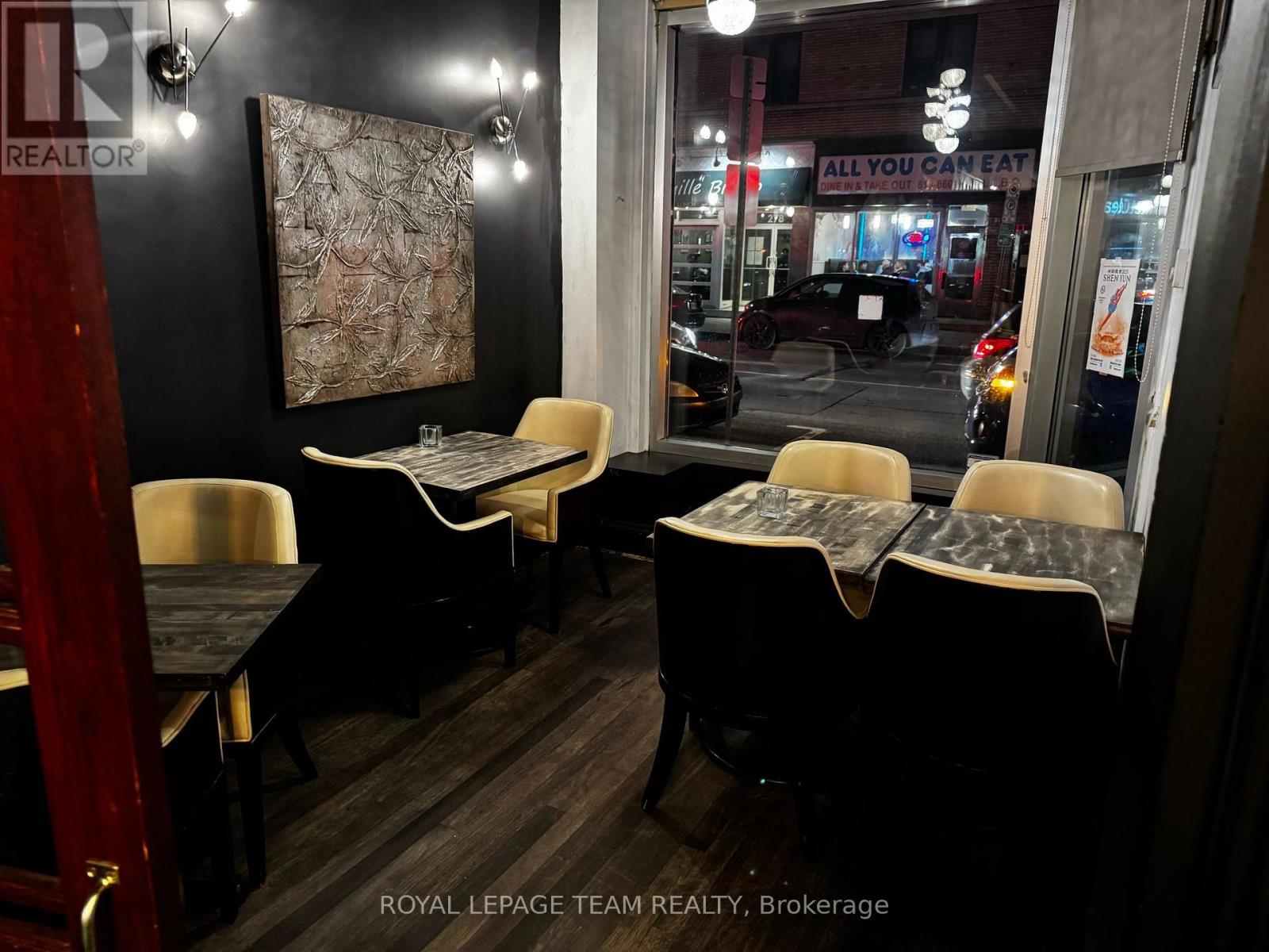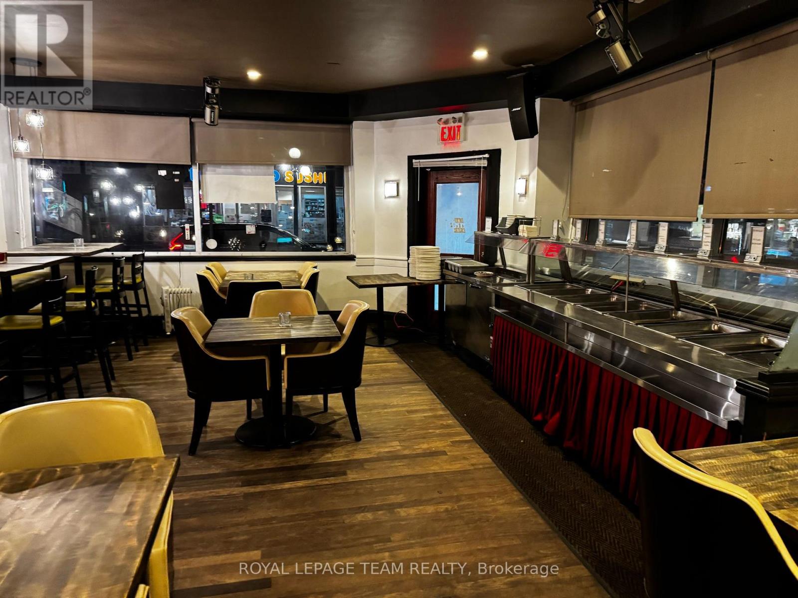 Welcome to the exceptional restaurant Kochin Kitchen in a great location at the heart of Ottawa's bustling ByWard Market! Price to SELL! Don't miss this rare chance to own a thriving restaurant. Nestled in a historic building that captures the essence of By-ward Markets rich heritage, creates a warm and welcoming atmosphere for clients and customers alike. Steps away from Ottawa University, Parliament, office buildings, and popular tourist destinations. Also the location is surrounded by high-rise condominiums within a walking distance, occupied by students and residents, and well-known hotels, including Marriott, Andaz, Les Suites, and Le Germain Hotel, ensuring a steady stream of tourists and professionals. Restaurant facility includes traditional entrance/reception/Bar, large dining area for about 80 people, operationally efficient kitchen includes, large 18 feet Hood, 10 burner stove, Girdle, Fryer, dish washing station, Steamer, movable storage stands, large single burner, cold station/salad fridge, Freezers, two walk in fridges, Beer cooling line/tap and fridge, glass cleaner, owned POSs, two dough machines, large men's/women's washrooms, a small office, and a preparation room and many more. You have the freedom to design the interior to suit your specific needs whether that means cozy dining areas. Showings require minimum of 24 hours' notice subject to availability, between 10AM-4PM. Future growth potential is great. Take advantage of this high-demand, high-rewarding business location. with City of Ottawa permit the patio can be made into usage. Excellent exposure, great layout, and move-in ready! Seize this incredible opportunity . (id:58075)
