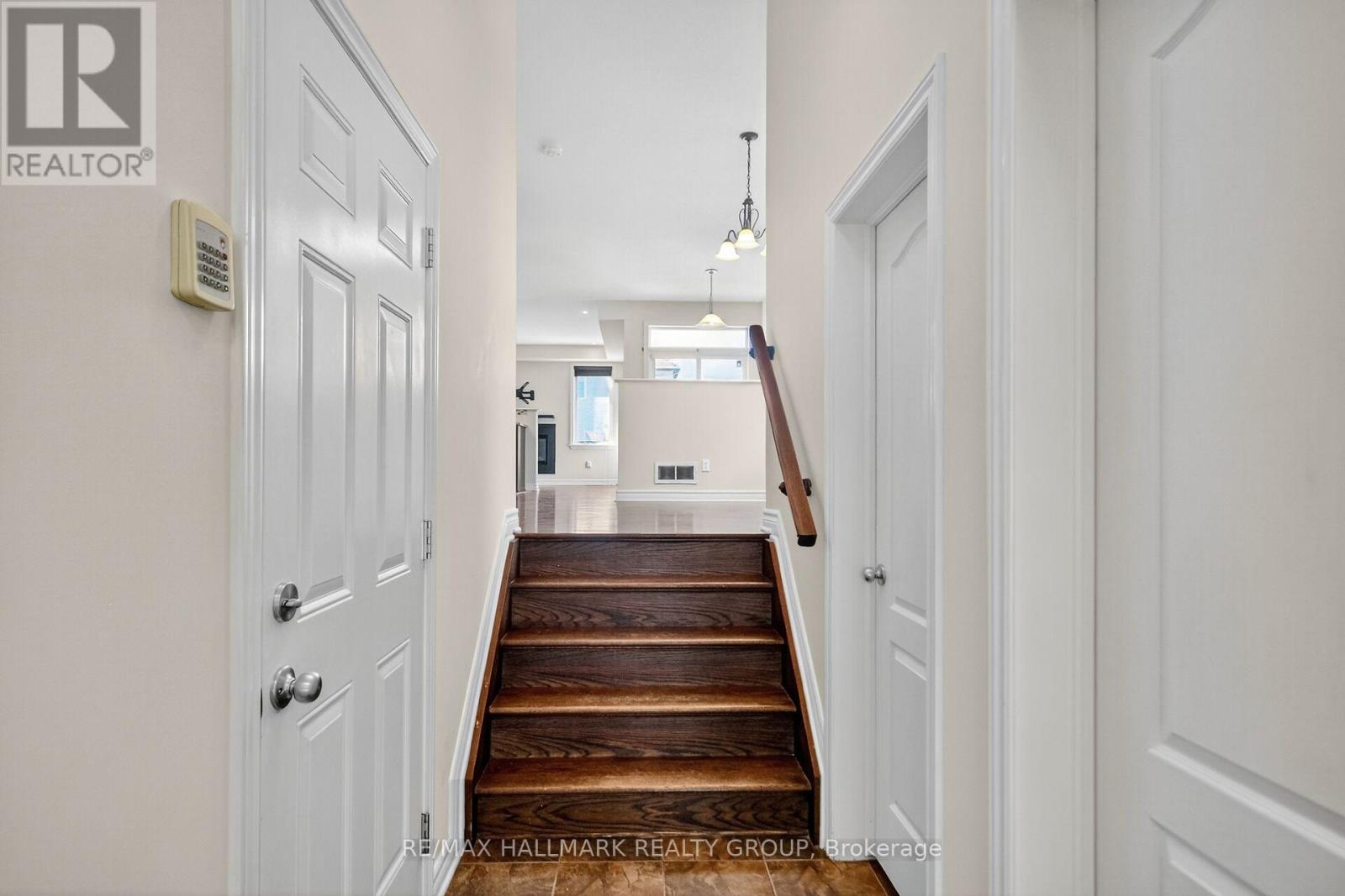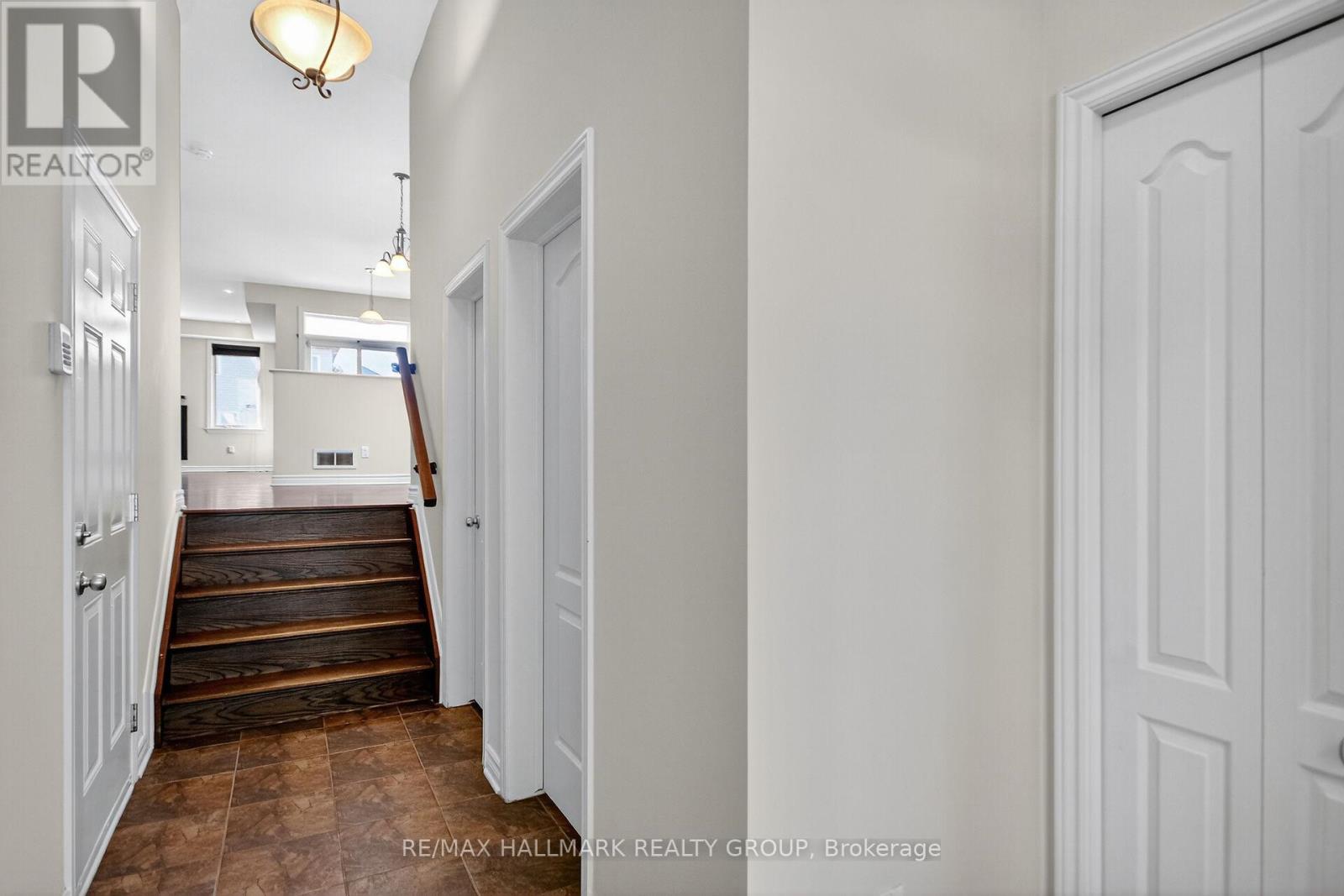 Beautiful 3 bedroom, 3 bath semi detached home in sought after location in Barrhaven. Enter to view gleaming hardwood & terrific hidden storage for seasonal clothing, powder room and garage entrance, then up a few stairs to the formal dining or lounge area, open to kitchen (with additional eat-in area great for young children) & family room with gas FP & walk out to deck! Upstairs to 2nd floor another lounge area or loft, great for TV area or den! Luxurious Primary bedroom with over-size walk-in closet with organizers, ensuite bath with great sized soaker tub & separate shower! 2 more good sized bedrooms complete the 2nd floor. Downstairs to the fully finished basement. Large expansive rec room with L-shaped space & 3 deep windows for great daylight. Second floor & basement offer plush carpet. Lovely fenced back yard & spacious deck, still leaves lots of gardening spaces!, Flooring: Hardwood, Flooring: Carpet W/W & Mixed (id:58075)