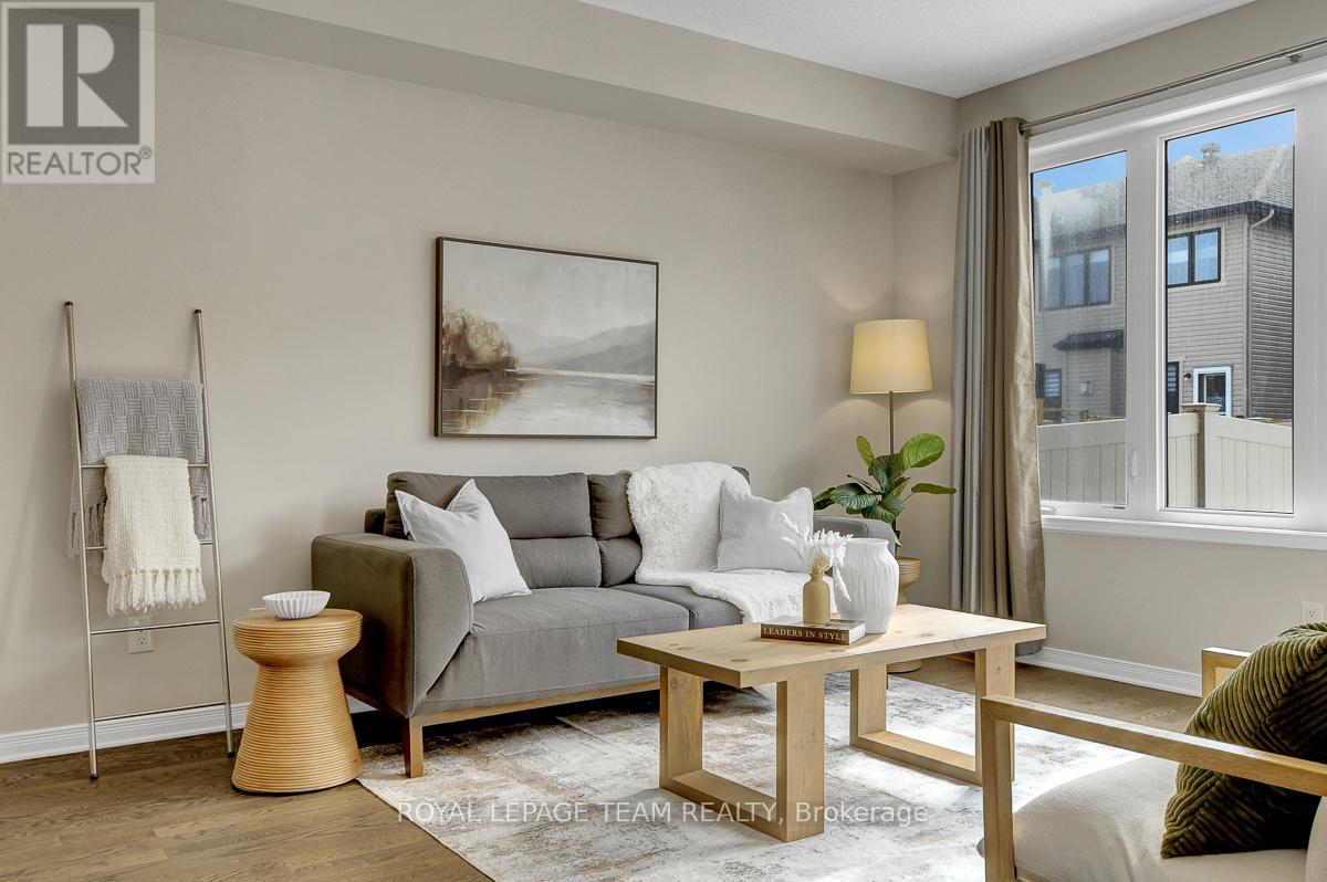 Tucked away on a quiet crescent in the highly desirable Blackstone community, this 3-bedroom, 2.5-bathroom townhome offers a bright, open-concept layout designed for comfortable modern living. Large windows fill the main living space with natural light, while rich hardwood flooring runs throughout the main level, creating a warm and inviting atmosphere ideal for everyday living and entertaining. The thoughtfully designed kitchen offers ample storage and excellent functionality.The spacious primary bedroom is a peaceful retreat, featuring plenty of natural light and a large ensuite bathroom. Two additional bedrooms provide ample space for family, guests, or a home office.The finished basement offers valuable bonus space-ideal for a recreation room, home gym, or play area. Outside, the beautifully hardscaped backyard patio provides a private, low-maintenance setting to relax, entertain, or enjoy warm summer evenings. Built by reputable builder Cardel Homes, this owner occupied, beautifully maintained home combines quality construction with a functional layout and bright, comfortable living spaces. (id:58075)