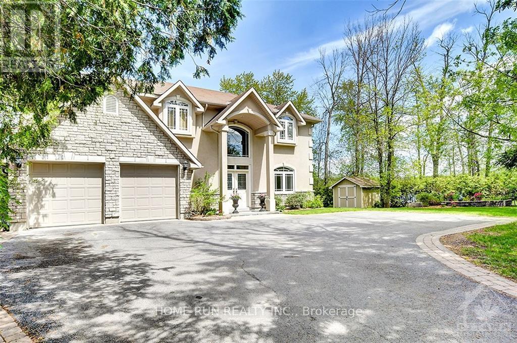 Privacy abounds in this custom built home on the Rideau River. Amazing waterfront. Grand foyer entrance, main floor office, cherry hardwood throughout the home. Kitchen has Maple cabinetry, granite counters w/breakfast bar. SS appliances & river view large breakfast area.18-foot cathedral ceilings in the river view family room w/gas fireplace. Amazing main floor river view master bedroom w/walk-in closet/luxurious ensuite. Second level features large loft recreation area w/gas fireplace, 3 additional beds w/two ensuite baths. Also has a large theater/gym. The wrap around concrete patio at the back of the house includes an outdoor kitchen & shed. Lush green grounds in the warmer months and private dock access to the Rideau River. Privat dock for your boat or canoe and kayak. The end this street is Chapman Mills Conservation Area. You can walking/ biking in is wonderful 23-acre parcel of conservation land. 7.8KM walking trail to Long Island by the beautiful Rideau River. (id:58075)