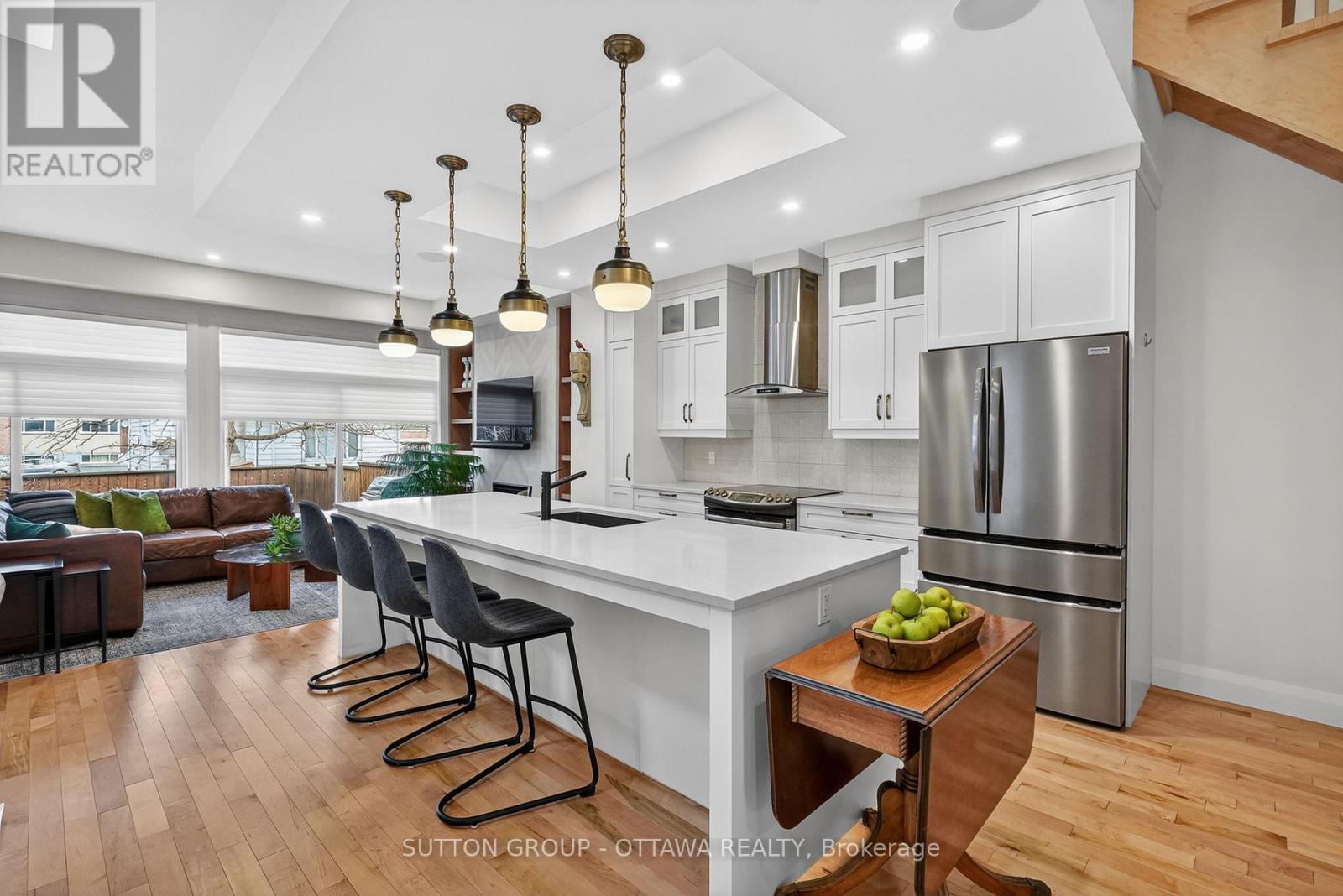 Welcome home Ottawa! Walk into this bright, contemporary, semi-detached, 4 bedroom, 4 bathroom, home in the heart of Overbrook and yes, it's located down by the river. Gorgeous flooring, high ceilings (10 ft), great layout, great flow and function. From the moment you step inside the spacious foyer you are drawn right in. You are welcomed by a gourmet kitchen with loads of space, a 10 foot island, floor to ceiling windows framing in your private oasis right off of the living room and dining which makes it easy and fun to entertain loved ones. Better yet, enjoy the river views, stars and fireworks from your hot tub on the roof top deck. Or on those cooler nights, enjoy your open concept living area and beautiful fireplace. With a separate side entrance, you have the ability to access the basement privately- This is perfect for an in-law/nanny suite, or teenage retreat! Lovely high ceilings (9 ft)Located across the street from Rivierain Park and the Rideau River. Daycare, nursery and great schools..enjoy the children's park w splash pad, tennis and pickleball, dog parks, bike paths, ski trails, public transit and all amenities at your fingertips. Walking distance to the footbridge which connects you to Strathcona Park. You really will love this location if you don't already. Gorgeous custom blinds, surround speakers, cabinetry in bsmt, stone patio and walkway, rooftop pergola, custom bookshelves, hot tub, and more - all included for you to enjoy!! 24 hours on all offers. (id:58075)