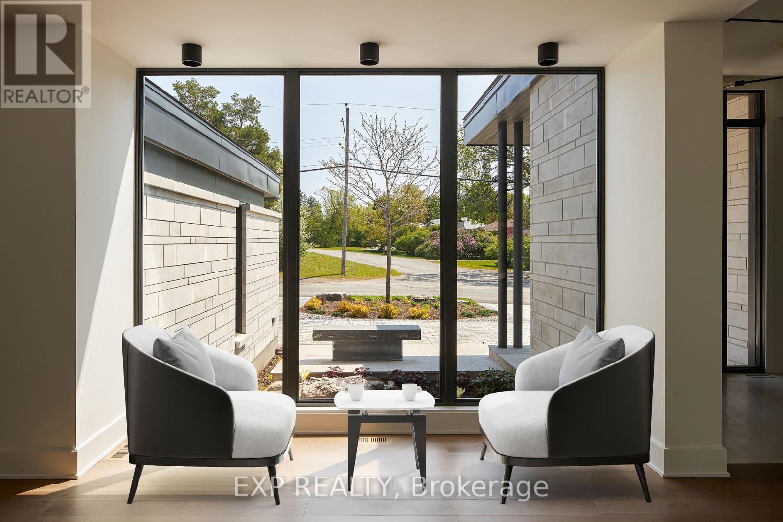 Discover the extraordinary at 32 ClovellyRd, a masterful home that transcends its modest exterior-offering over 8,000sqft of sophisticated living in the distinguished enclave of Rothwell Heights. Honoured as Canada's Best NetZero Home (2024), this architectural gem rests on a secluded ravine lot (200'150') with natural limestone and a dramatic 20' cliff backdrop. Inside, five gracious bedrooms, 5 elegant baths, soaring 14' ceilings, and a dramatic four-sided fireplace frame expansive treetop vistas through floor-to-ceiling windows. Smart, sustainable, and effortlessly luxurious, this home invites discerning buyers from around the world to experience design, comfort, and innovation at its finest. (id:58075)