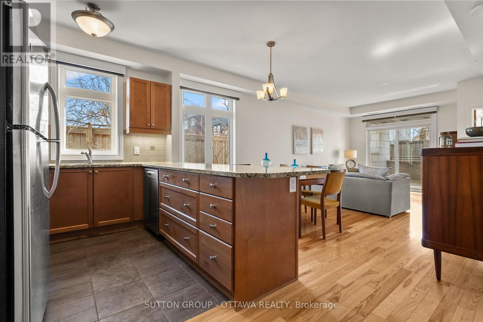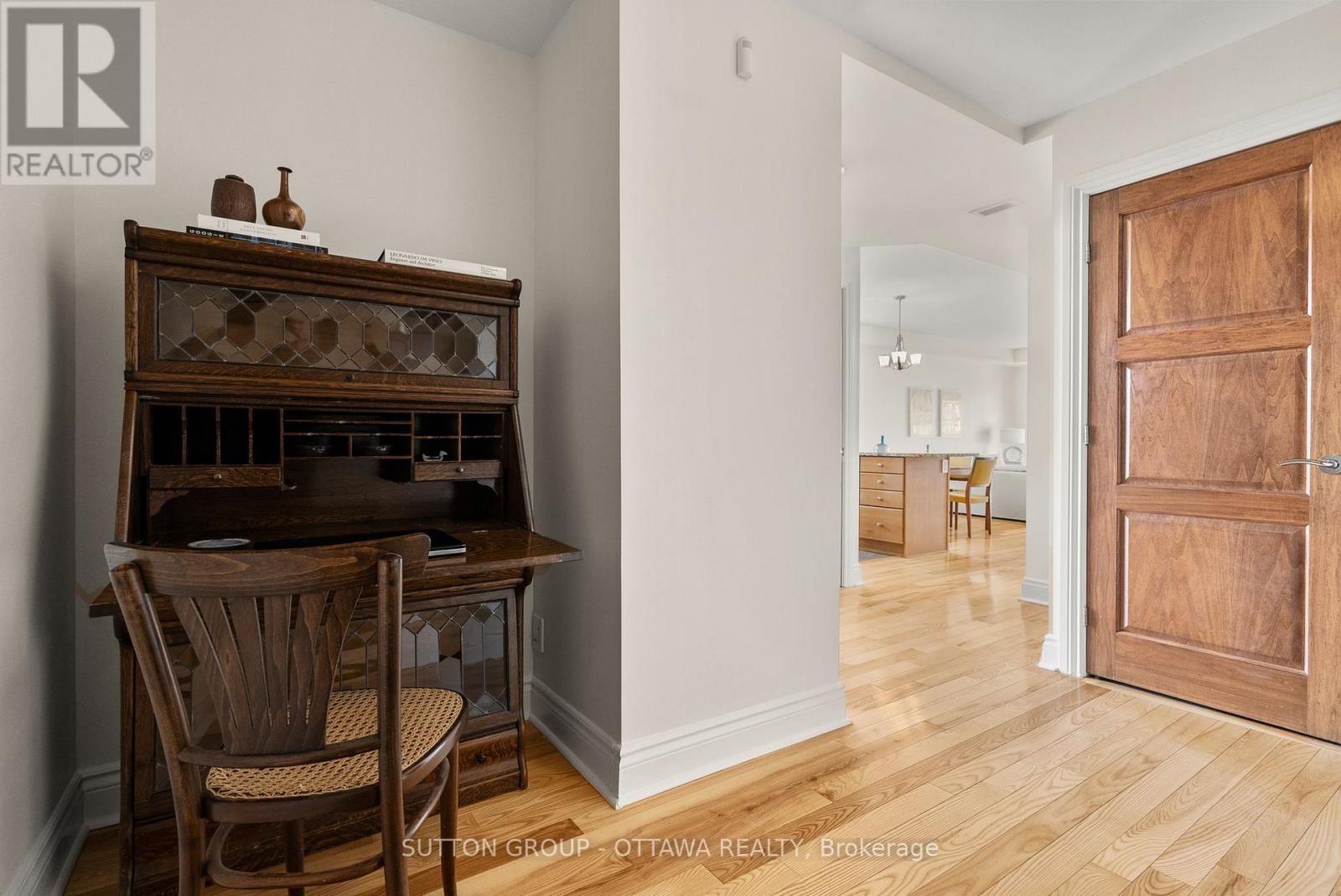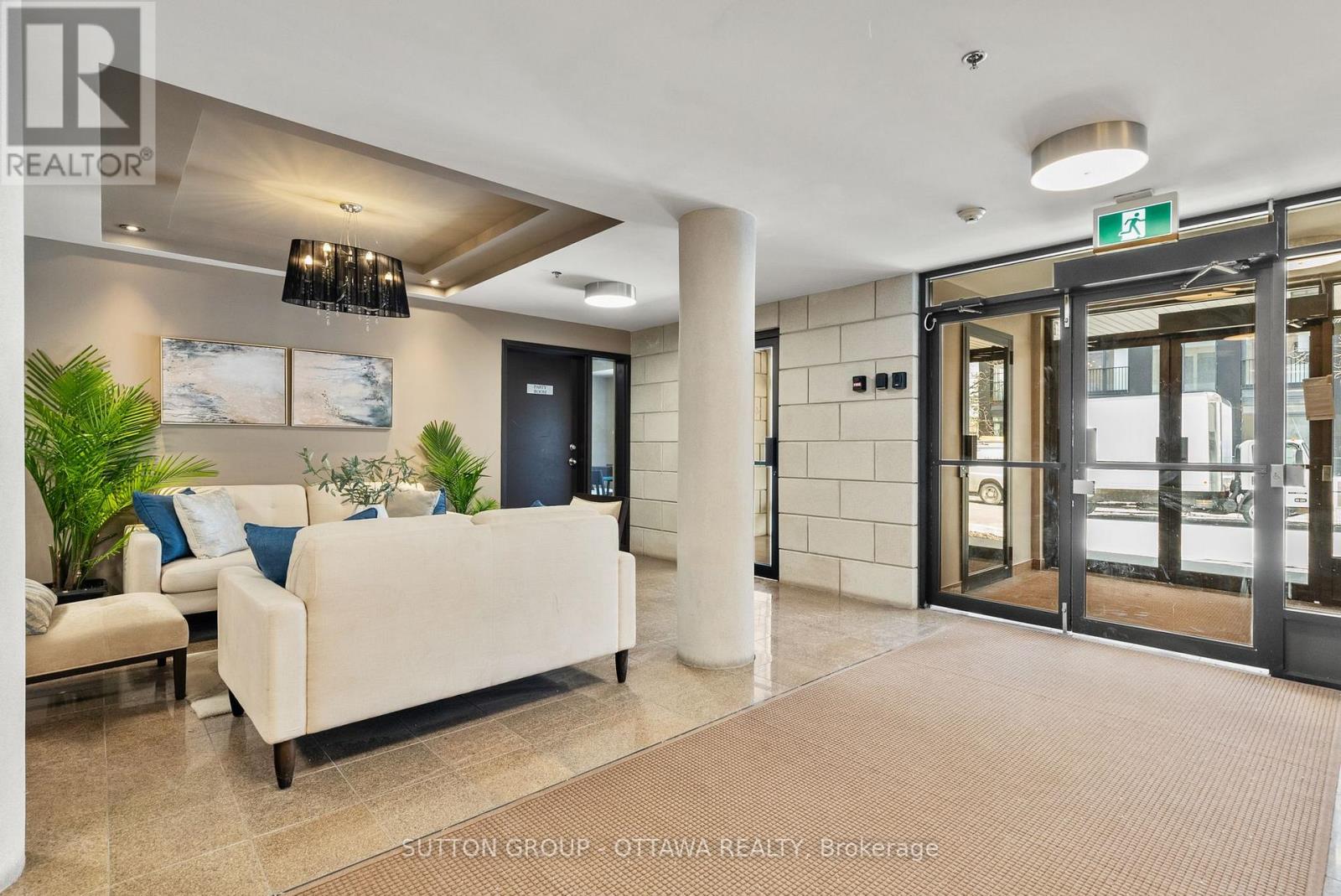 TASTEFULLY UPDATED CONDO IN THE HEART OF WESTBORO! This 2 bedroom+Den, 2 full bathroom main level unit is at the end of the first floor making it incredibly quiet and private, yet accessible for those with mobility needs! This unit is fitted with custom Lutron automated (programmable/remote controlled) blinds and lighting (2020) which is an added bonus for accessibility and overall convenience. The kitchen overlooking the living/dining area features granite countertops, stainless steel appliances, and a large peninsula offering additional seating. The spacious, open concept living/dining area features plenty of room for full size furniture making dinner parties a delight! The primary bedroom with a huge, sunny window, has a walk-in closet which leads the way to the fully renovated ensuite bathroom (2019). This ensuite was custom designed with accessibility in mind while maintaining a luxe feel (glass enclosed shower with no curb, comfort height toilet, etc.). The second bedroom is a great size and has access to the second full bath (with shower/tub combo) off the main space. Enjoy your morning coffee on the private, elevated balcony with entry from either the primary bedroom or living space. The bonus den is perfect as a reading nook or home office. To top it off, this unit features convenient in-suite laundry, plenty of closet space, as well as a designated storage locker and underground parking spot. Nothing is missing!! UPGRADES: Air Handler & On Demand Water Heater 2022, AC 2025, Professionally Painted 2026, Miele Dishwasher + Miele Stacking Washer & Dryer replaced within the last few years. Work out in the building's gym or host large gatherings in the fully equipped party room. In less than 10 minutes, walk to restaurants, coffee shops, grocery stores (Farm Boy!), recreation, future Westboro station & more! Book your showing today! (id:58075)