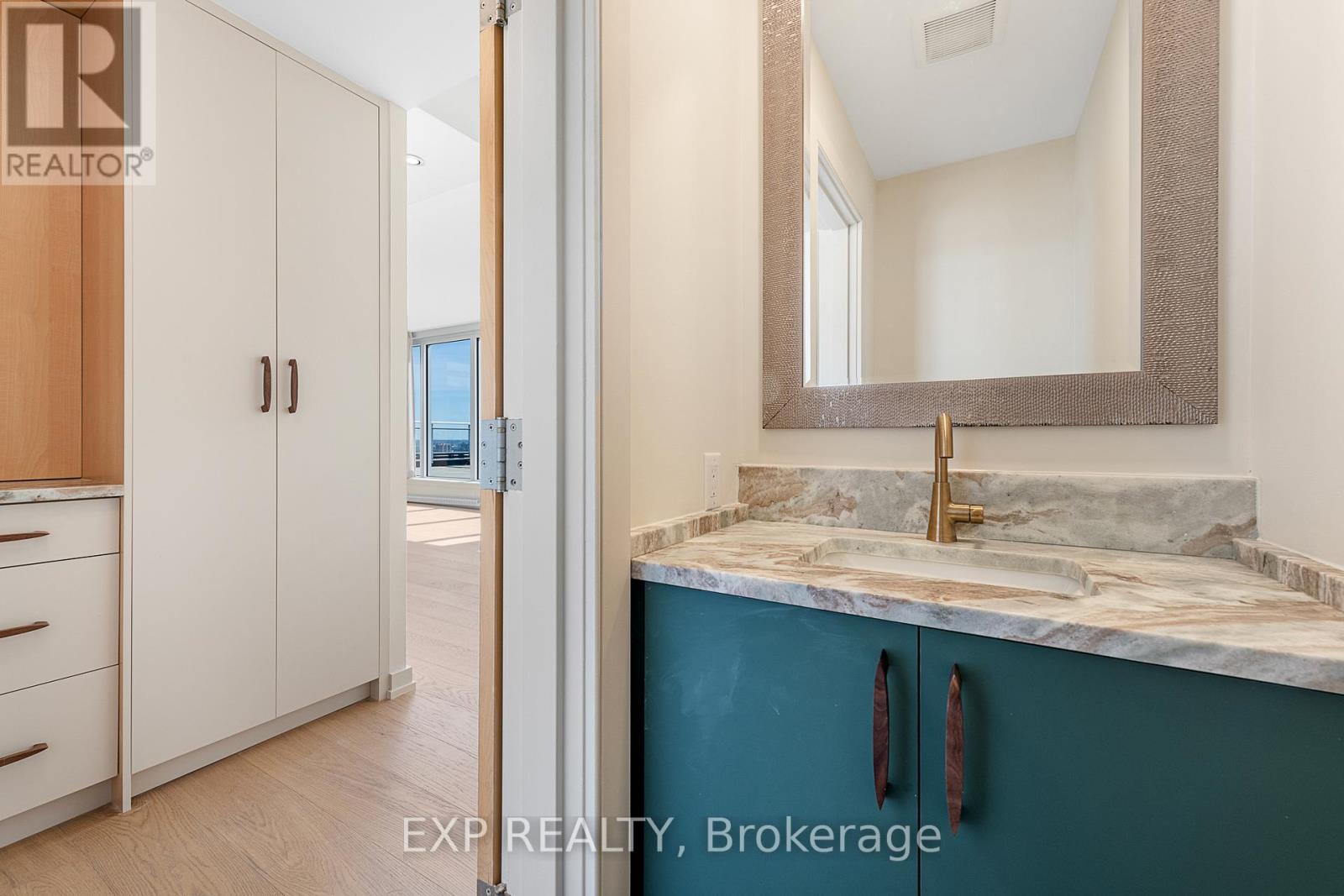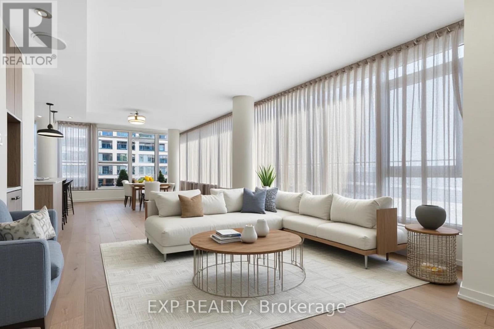 Live above it all in this rare two-storey penthouse at the Mondrian - an architectural landmark in the heart of downtown Ottawa. Completely renovated from top to bottom, this 2-bedroom + loft, 3-bath residence delivers sophisticated urban living paired with an oversized private terrace showcasing iconic views of the Parliament Peace Tower and Gatineau Hills. Every detail has been meticulously curated. The main level is wrapped in floor-to-ceiling windows, anchored by brand new engineered hardwood floors and staircase, and finished with custom drapery for an elegant touch. The custom-designed kitchen is a true centrepiece, boasting bespoke millwork, leathered natural stone countertops, a panelled integrated fridge and dishwasher, a walk-in pantry, and a built-in coffee/bar station. Upstairs, discover two spacious bedrooms and a bright open loft ideal for a home office. The primary suite offers breathtaking skyline views, a custom walk-through closet, and a spa-inspired ensuite with a stone-topped vanity. The second bedroom enjoys equally stunning city vistas. All bathrooms have been renewed with custom vanities, stone countertops, and new toilets, while custom closets throughout provide effortless organization. Step outside to your expansive terrace - a private oasis in the sky, perfect for hosting or unwinding high above the city. Residents of the Mondrian enjoy resort-style amenities including a rooftop terrace with plunge pool and cabanas, a boutique hotel-style lobby with concierge, a modern fitness centre, and a chic residents lounge. This striking 24-storey glass tower, inspired by modernist painter Piet Mondrian, boasts a high walk score and is steps to the LRT, Parliament Hill, the ByWard Market, Rideau Centre, top dining, shopping, and parks. Underground parking and storage locker included. A rare fusion of luxury, design, and location - this two-storey penthouse offers an unparalleled lifestyle in Ottawas vibrant core. (id:58075)