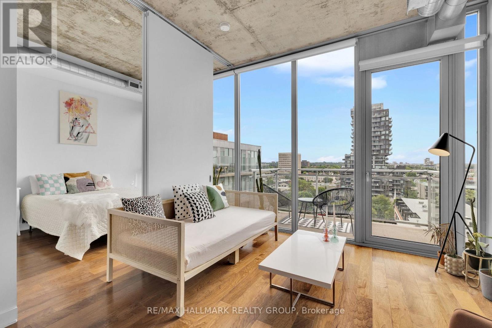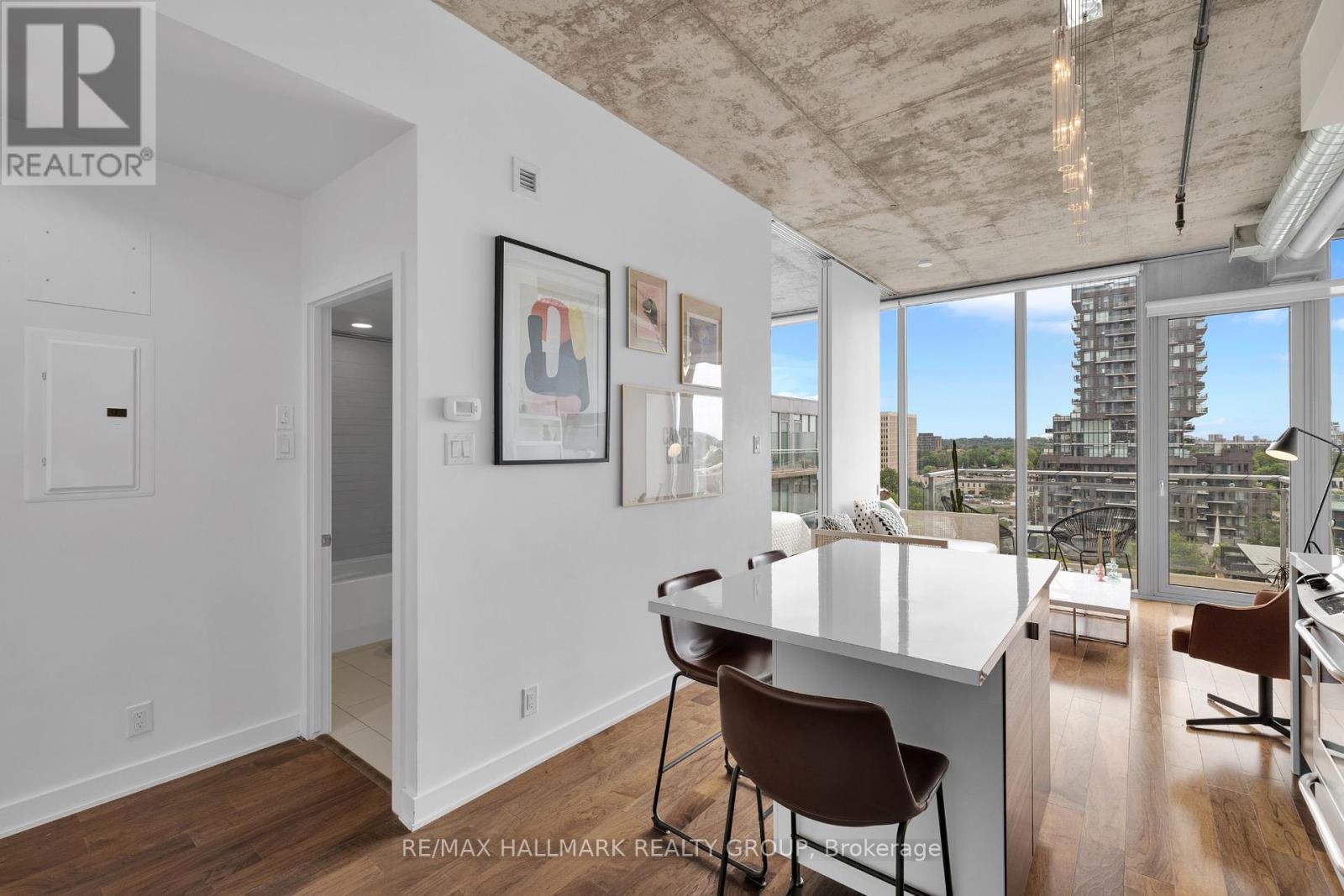 Here's a unique chance to own a penthouse suite at The Hideaway, coming to market for the first time from its original owner. This top-floor, south-facing 1-bedroom condo boasts expansive views over the Glebe, Lansdowne, and the surrounding cityscape. The 10-foot ceilings and a full wall of windows fill the space with natural sunlight, creating an open and inviting atmosphere. Inside, you'll find well-planned living space, plus a private balcony to enjoy the fresh air. The flooring is a mix of engineered hardwood and tile, while the kitchen and bathroom feature quartz countertops and upgraded cabinets with deep drawers. The custom island offers extra seating and storage, blending style and practicality. The bedroom has plenty of natural light and closet space, and the bathroom is both modern and sleek. The building offers resort-style amenities that feel like a getaway every day. Enjoy the heated saltwater pool with cabanas and a firepit, unwind on the ground floor terrace, stay active in the fully equipped gym, or host friends in the party room with bar and pool table. Enjoy movie night in the theatre room. There's also a secure bike storage. INCLUDED: 1 underground parking space and a storage locker. Underground Visitor Parking for guests. Located just off Bank Street in Centretown, The Hideaway puts you within easy walking distance of some of Ottawa's best restaurants, cafes, parks, and shops. You are minutes from Elgin Street, the Glebe, Lansdowne Park, and the city's top festivals. With a Walk Score of 99 and a Bike Score of 97, this condo offers a rare combination of peaceful penthouse living and vibrant city life. This opportunity does not come around often. (id:58075)