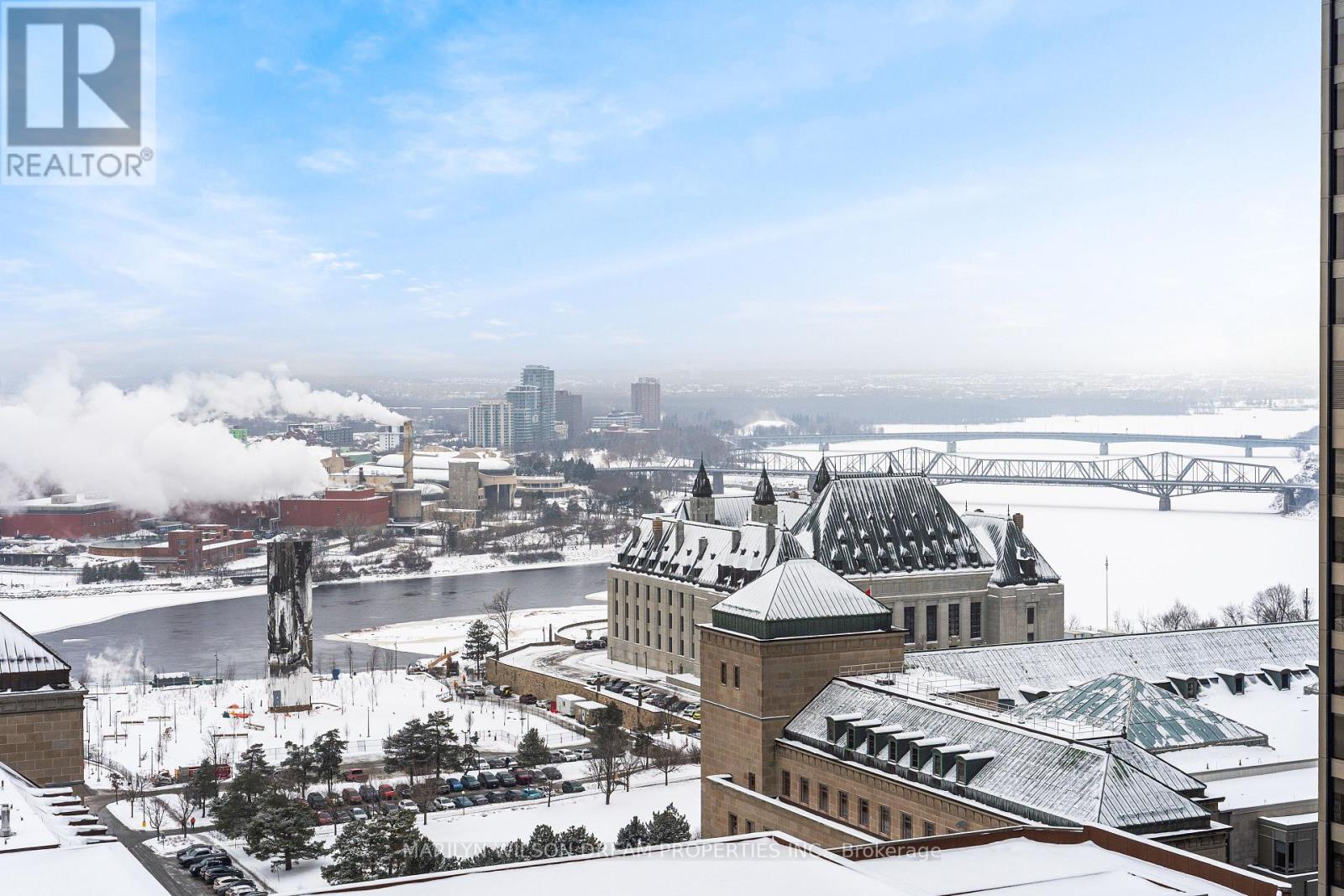 Welcome to an ALL INCLUSIVE dream home. This gorgeous 2 bedroom 2 full bathroom residence is offered fully furnished, with parking, utilities, and internet included - removing friction from daily life and allowing you to simply move in and settle. Wake up to sweeping Ottawa River views from both bedrooms, the kitchen, and the living room - an ever-changing backdrop that brings calm and light into everyday life. High ceilings and an open, well-considered layout create a bright, comfortable atmosphere that feels both modern and inviting.The kitchen is finished with veined quartz countertops, stainless steel appliances, and a peninsula island that naturally connects to the living space - ideal for relaxed evenings or easy entertaining. The primary bedroom offers a private ensuite and direct access to the balcony, creating a peaceful retreat above the city.The building delivers an exceptional amenity experience, including an indoor pool, gym, cinema room, business centre, party room, and a second-floor terrace with BBQs. A 24-hour concierge and security provide added peace of mind. With Food Basics and the Lyon LRT Station located within the building, errands and commuting are seamless. The location is especially well suited to professionals working downtown, with quick access to Parliament Hill, Place de Ville, World Exchange Plaza, and Ottawa's core office hubs. One underground parking space is included. (id:58075)