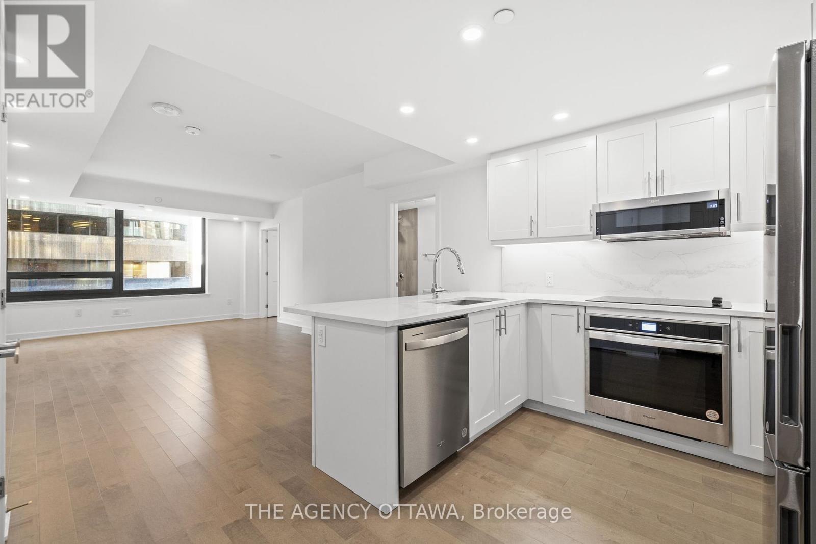 CONDO FEES FULLY COVERED FOR THE NEXT 2 YEARS PLUS A FREE PARKING SPOT INCLUDED! Welcome to this stylish 2-bedroom, 2-bathroom condo located in the heart of downtown Ottawa. Boasting 910 sq. ft. of modern living space, this Claridge Equinox model offers an open-concept layout perfect for entertaining. The sleek kitchen features stainless steel appliances, a breakfast bar, and ample cabinetry, while the spacious living and dining areas are bathed in natural light. The primary bedroom includes a walk-through closet and an ensuite bath for added privacy. An additional bedroom and a full bathroom complete the unit. Convenient in-unit laundry adds to the comfort and ease of everyday living. Enjoy added storage with a locker, and parking is available for an additional cost. Residents of this well-maintained building enjoy exceptional amenities, including a gym, meeting room, party room, indoor pool, and an exclusive rooftop terrace with barbecues - ideal for social gatherings. With 24-hour concierge and security services, you'll have peace of mind in this secure, vibrant community. Located just steps from top restaurants, shopping, and transit options, this condo offers both convenience and luxury in one of Ottawas most desirable neighbourhoods. Don't miss out - schedule your viewing today! (id:58075)