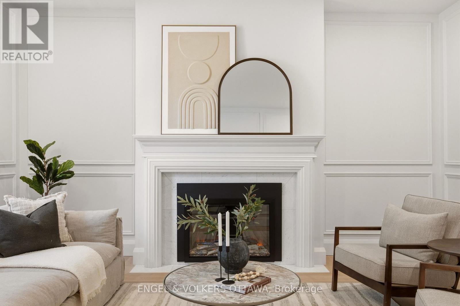 Welcome to 35 Mackay Street, a beautifully restored semi-detached heritage home in the heart of New Edinburgh, offering 4 bedrooms and 3.5 bathrooms. Inside, custom millwork, rich white oak flooring, and expansive ceilings flow throughout. The grand living room is filled with natural light and centered around a restored original fireplace - ideal for both relaxed mornings and evening unwinding. It flows effortlessly into the spacious dining room, perfect for entertaining. Just off the dining area is a sun-drenched bonus space, ideal for a home office or breakfast nook. The kitchen features soaring cathedral ceilings, excellent storage, and high-end finishes including custom cabinetry, a plastered hood fan, beveled subway tile, toasted bronze hardware, and beautiful Hanstone countertops. A practical mudroom provides easy access to the private outdoor space, ideal for morning coffee or outdoor dining. A powder room with intricate hexagon mosaic tile and a black walnut vanity completes the main level. The second level offers a bright and spacious primary retreat with double closets and a stunning ensuite featuring a double vanity, elegant tilework, and an oversized glass walk-in shower. A second bedroom and a well-appointed main bath complete this level. The top floor includes two additional bedrooms, versatile options for a playroom or home office, and another full bath. Enjoy the convenience of dedicated parking. Ideally located across from Rideau Hall, steps to Beechwood shops and dining, and minutes to downtown, parks, and Ottawa River pathways. (id:58075)