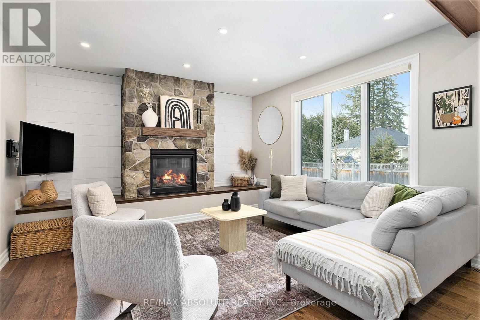 Bespoke in every way. A 3 bedroom, 4 bathroom home of this caliber is rarely ever offered. Not a single detail was overlooked in creating this custom residence with Scandinavian sophistication, elegance evident at every corner. Convenient main floor powder room, and a walk-in entrance closet. Separate oversized mudroom with cubbies, additional storage and an extra closet area for your growing family. High ceilings, huge picture windows, custom cabinetry and upgraded fixtures. Every square foot of this home was custom designed & finished with no room for compromise. A fully retractable door blends the indoor and outdoor spaces through an inviting outdoor entertaining area in the sunroom with radiant in-floor heating, oversized ceramic tile flooring, with bar and wood burning stove for your comfort. The white kitchen has oversized granite countertops with breakfast bar, and a separate walk in pantry with a full coffee station. Surrounded by floor to ceiling windows looking out to the low-maintenance grounds, this home is luxury at its finest . Nine foot ceilings throughout, with solid wood beams on the main level, and 5" solid wood premium floors throughout. No Carpet anywhere! The Primary Bedroom has a concealed oversized walk in closet, and a spa like ensuite with a separate soaker tub, and oversized glass shower. 2 additional bedrooms with huge closets, and a separate bedroom level laundry room complete with cabinets, folding station, and hide-away drying rack. The basement level offers a generous playroom, with a full 2piece bathroom (shower/tub rough-in included) and plenty of storage. The yard includes professionally installed astro turf, and a partly fenced yard with plenty of space for your imagination. With bright and airy living spaces inside and out, this truly is a magazine worthy home. Furnace, Hot Water Tank & AC 2018. (id:58075)