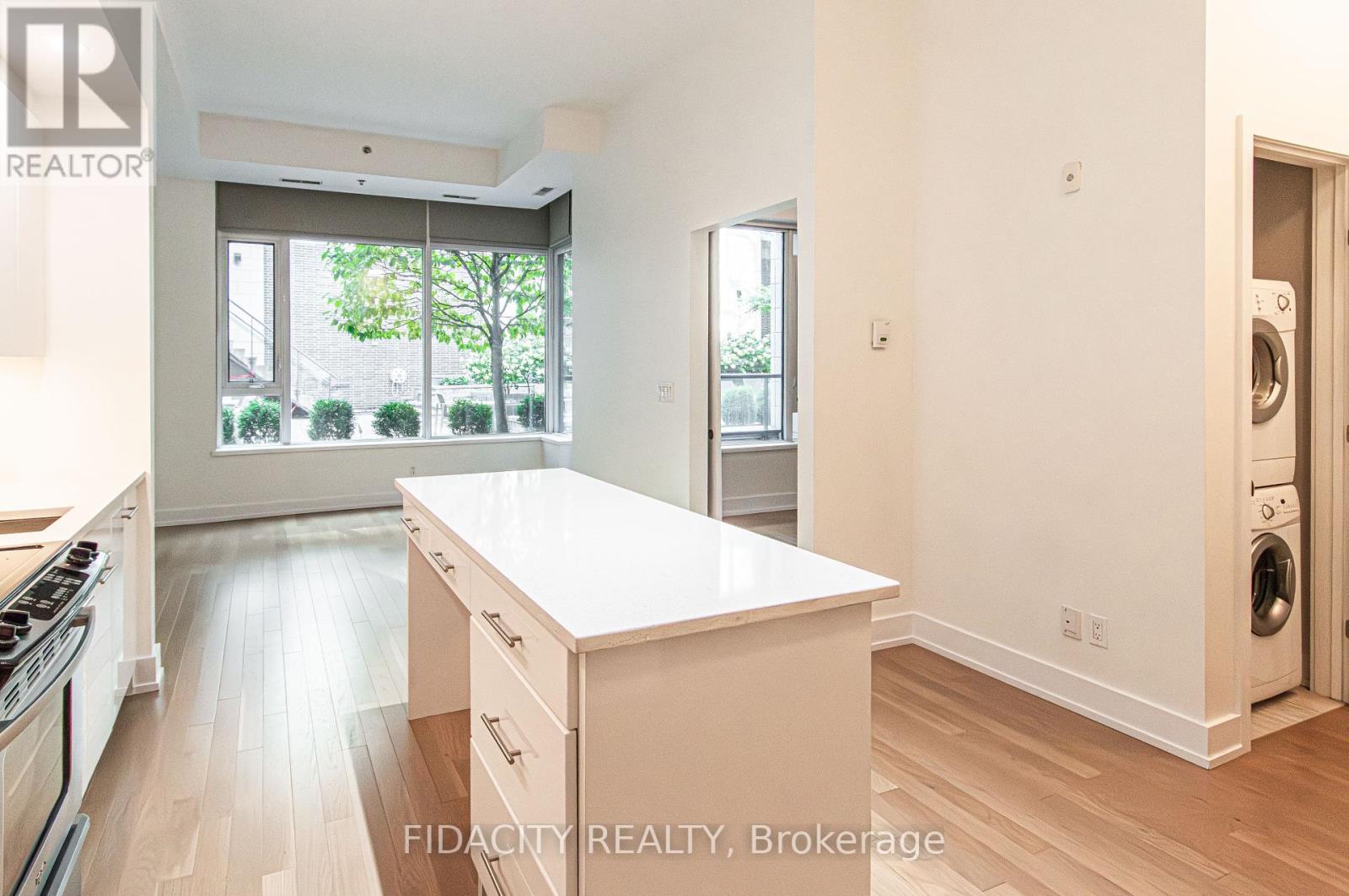 Welcome to 360 Patricia Ave Unit 107!! This modern 1 Bed and 1 Bath condo you've been waiting for at the ever popular Westboro area. Featuring an open concept living space, stunning kitchen, 3-pc bathroom and hardwood flooring throughout. Bedroom with sliding doors opens onto the main living space and overlooks interior courtyard. Floor-to-ceiling windows offer plenty of sunlight, and a large balcony to the outdoor courtyard with a heck of a view! Enjoy the Westboro lifestyle and walk to everything - restaurants, shops, public transit and more! Amenities include a massive rooftop terrace with BBQs, exercise room, party room & theatre room. (id:58075)