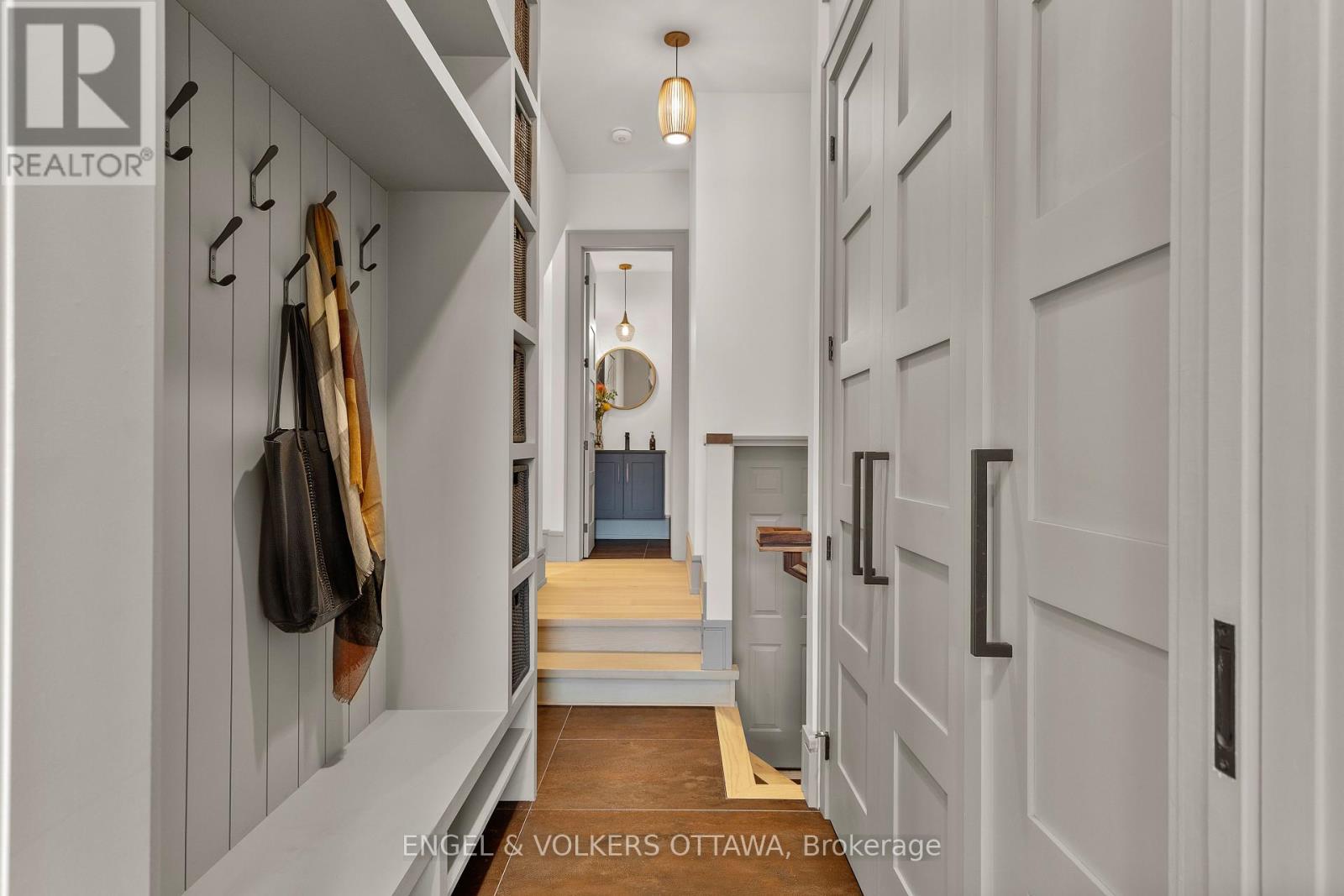 This high-quality, 3,500 sq. ft. custom home in the heart of Wellington Village is not only beautiful, the layout is functionally fabulous and features a rare double-height garage w/ reinforced floors, zoned HVAC and elevated ceiling heights. The entry is anchored by a dramatic 22 ft high foyer w/ custom walnut niche, walnut light fixtures, and heated porcelain floors that lead to an adjacent mudroom or the open-concept living & dining area featuring a floor-to-10-foot-ceiling-height fireplace clad in Dekton porcelain slabs & a custom staircase featuring walnut handrails and newel posts milled from a tree once on the property. At the heart of the home, a chef-inspired kitchen boasts a barrel-vaulted ceiling that extends thru to the connected family room, Dekton countertops & walls, 10 ft island, a beverage station & premium Fisher & Paykel appliances and an adjacent screened porch. Arriving at the second level, you're met w/ a 2nd barrel-vaulted ceiling, 9 ft high and four spacious bedrooms all with ensuite bathrooms & a nursery/office. The primary suite features his & hers walk-in closets & an ensuite w/ Dekton counters & shower surround, wood-accent shelving as with other bathrooms, & a free-standing tub. A well-appointed laundry room with a proper sink, quartz counters & ample storage. The lower level provides bonus living space w/ a sprawling recreation room w/ rough-in for a bar, a bedroom w/ an ensuite, a powder room, & heated flooring throughout. 8'-4" ceilings, w/ pot lighting & LVP wide-plank floors maintain the character of the home's upper levels. The remainder of flooring throughout the home is wide-plank, white oak engineered hardwood. The landscaped, fully fenced backyard includes an interlock patio, a cedar pergola-topped BBQ deck, defined garden beds & mature trees. Set on a tree-lined street in Wellington Village, this home is just steps from Elmdale Public School, Parkdale Market, and the shops, cafés, & restaurants of Wellington West & Westboro. (id:58075)
