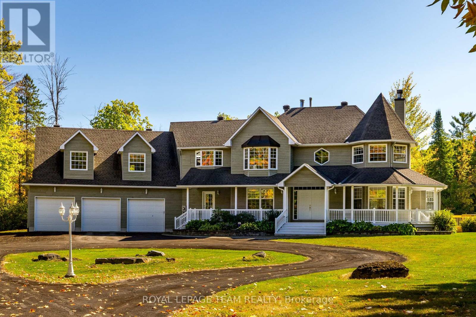 OPEN HOUSE NOV 2nd 2-4PM. Welcome to an extraordinary retreat in prestigious Marchvale Estates, where over 4,100 sq. ft. of luxury living awaits on more than 3 acres of impeccably landscaped, private grounds. This custom-built residence combines timeless elegance with thoughtful family design, offering 5 bed, 4 bath, and a layout that perfectly balances everyday comfort with grand entertaining. Set back from the road along a picturesque tree-lined circular driveway, the home makes a striking first impression. A 3-car garage, dual front entrances, and dual staircases add both sophistication and multi generational living potential. Inside, natural light pours through abundant bay windows, showcasing sweeping views of the grounds. Three patio walkouts seamlessly connect indoor living spaces to the serene outdoors. The home boasts soaring 9ft ceilings, rich hardwood and ceramic floors, and a chefs kitchen. Formal and casual living areas offer flexibility for gatherings of any size, while a main-floor bedroom or office provides privacy and versatility. Upstairs, the lavish primary suite is a private sanctuary, complete with a spa-inspired 5-piece ensuite. A second private suite with its own ensuite and walk-in closet includes an adjoining bonus room; ideal for a playroom, media room, dressing roon, or teen retreat. Two additional bedrooms complete the family-friendly upper level. The fully finished lower level expands the living space beautifully with new flooring, direct access to the garage, ample storage, a bar and endless possibilities for a home gym, rec room, or guest accommodations. A geothermal system ensures year-round comfort with impressive energy efficiency. Outdoors, an irrigation system ensures lush, low-maintenance grounds, perfect for play and relaxation alike. Ideally located just 5 mins from Kanatas high-tech hub, top schools, golf & everyday amenities. With quick access to Highway 417, this estate offers the ultimate blend of privacy and convenience. (id:58075)