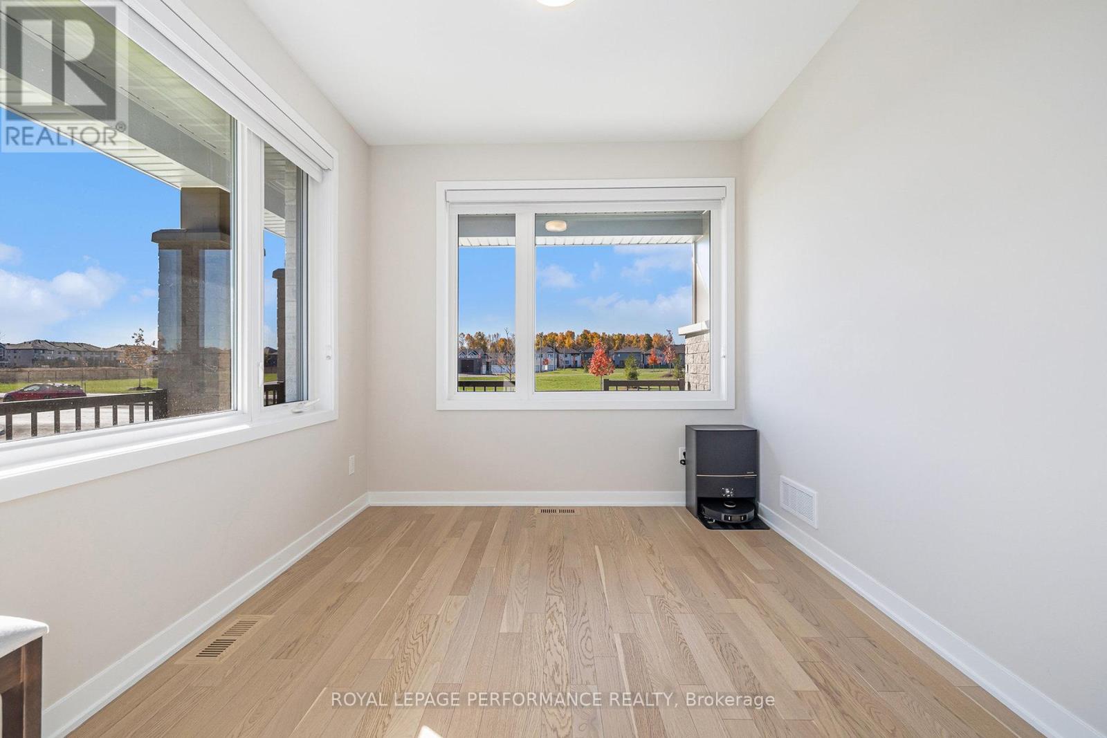 Welcome to 380 Meynell Road, a beautiful 2024 Mattamy-built 4-bedroom, 2.5-bath detached home ideally situated on a corner lot in the growing neighbourhood of Richmond community. This modern home combines thoughtful design, premium finishes, and natural light throughout thanks to its corner location.The main floor features an open-concept layout with 9-ft ceilings, hardwood flooring, large windows, and a cozy fireplace. The modern kitchen offers extended countertops, stainless-steel appliances, a spacious island with breakfast bar, and an eating area overlooking the backyard-perfect for everyday family living and entertaining. A separate den on the main level provides a convenient space for a home office or study. A powder room and inside access to the garage complete this level. Upstairs, you'll find four generous bedrooms, including a primary suite with a walk-in closet and a luxurious 5-piece ensuite with double sinks. A second full bathroom serves the additional bedrooms, and the convenient second-floor laundry room adds extra functionality for day-to-day living. The unfinished basement offers excellent storage and flexibility for future use. Tenant is responsible for hydro, natural gas & water, along with tenant liability/content insurance | Please submit the following along with a fully filled out application: ID, credit report, proof of income and employment. (id:58075)