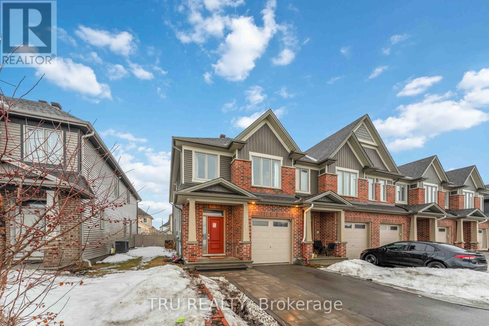 Welcome to 4031 Kelly Farm Drive, Ottawa-a beautiful END -unit Gala model by Tartan Homes offering over 2,500 sq ft of well-designed living space across three levels, located in the highly desirable Findlay Creek community. This home is perfectly positioned facing a park, with NO neighbors in front, providing open views and added privacy. The bright main floor features a modern chef's kitchen with quartz countertops, stainless steel appliances, and a large island that opens seamlessly to the spacious dining and living areas-perfect for everyday living andentertaining. 9-foot ceilings and pot lights add a bright and elegant touch throughout the space. Upstairs you'll find FOUR generous bedrooms, including a private primary suite with a walk-in closet and a modern ensuite bathroom. A convenient second-floor laundry room and anadditional full bathroom make family living both easy and practical. The fully finished lower level provides over 550 sq ft of additional living space, complete with a 3-piece bathroom, making it ideal for a guest suite, home office, or recreation room. Step outside to enjoy a fully fencedbackyard, perfect for relaxing or entertaining. The yard also includes a garden storage shed and an extended interlock driveway thataccommodates an additional vehicle. The home is Energy Star certified, offering improved efficiency and comfort year-round. Located in theheart of Findlay Creek, you are just minutes from parks, community pools, shopping, and excellent schools, including the newly built Findlay Creek Catholic Elementary School and Vimy Ridge Academy. The nearby Leitrim Park-and-Ride O-Train station provides quick and convenientaccess to downtown Ottawa. End units like this are rarely available-a fantastic opportunity to own in one of Ottawa's most popular neighborhoods. (id:58075)