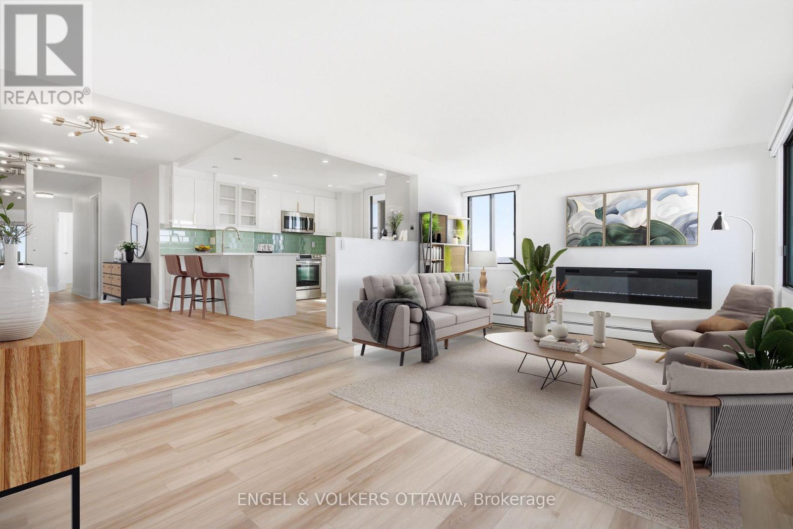 Stunning 3-Bedroom Bungalow in the sky with Breathtaking Riverview! Welcome to your dream home with a picture-perfect view of the Ottawa river. This beautifully updated condo offers the perfect blend of modern luxury and natural beauty. Key Features: 3 bedrooms with ample natural light, a Primary bedroom suite with balcony access, Open-concept living and dining area with large windows and electric blinds. A fully renovated kitchen with top-of-the-line appliances and quartz countertops, Updated bathrooms with contemporary fixtures and finishes, LVP flooring throughout for a sleek elegant look, In-unit laundry for your convenience. Imagine endless evenings of sunset views over the balcony. This condo offers the perfect escape from the hustle and bustle of city life while providing easy access to all amenities and transportation. Don't miss out on this rare opportunity to own a fully updated condo with a Riverview that will take your breath away and a building that does not fall short on amenities. (id:58075)