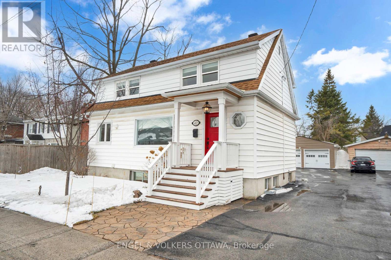 Welcome to 42 Anna Avenue, a beautifully updated home in the desirable Carlington - Central Park neighbourhood. Offering exceptional versatility, this charming property features 3+1 bedrooms, 3 full bathrooms, and two kitchens, making it ideal for families, multi-generational living, or potential income opportunities. Originally built in 1950, the home has undergone extensive renovations and thoughtful upgrades over the years. The main kitchen was fully renovated in 2022 and features quartz countertops, ceramic tile flooring, updated lighting, refinished cabinetry, new windows, and modern appliances. Bathrooms have also been tastefully updated, including a renovated main floor full bathroom (2023) and a fully renovated second-floor bathroom (2019) with glass shower, double vanity, new insulation, and improved ventilation. The original cast iron tub was re-glazed in 2023. The finished basement adds valuable living space, including a fourth bedroom, updated flooring, lighting, and a refreshed kitchen with refinished cabinetry, quartz countertops, and an island. This level also includes a full bathroom, creating flexibility for extended family, guests, or additional living space. Additional upgrades include refinished hardwood floors and updated trim (2023), improved electrical wiring with GFI outlets, newer exterior doors and select windows (2016-2023), a high-efficiency furnace (2014), and central air conditioning. Situated on a 50 x 108 ft lot, the exterior features a covered front porch (2017), cedar deck (2015), landscaped yards with interlocking patios, mature walnut trees, and full cedar fencing. The property also includes a double detached garage (21' x 23') keeping your vehicles snow free in the winter months. Conveniently located near parks, schools, shopping, and transit, this well-maintained home offers the perfect blend of character, modern upgrades, and flexible living space in a central Ottawa location. (id:58075)