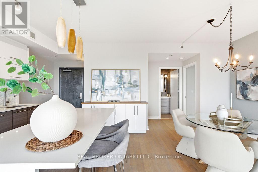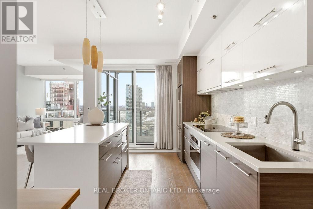 Perched atop the Ottawa escarpment, the elevated ridge overlooking the river, stands the architecturally striking Cathedral Hill. On the 14th floor sits this refined 2 bedroom, 2 bath, 1078 square foot condominium residence with an additional, private 79 square foot terrace. Expansive floor-to-ceiling windows frame spectacular views of the Ottawa River and Gatineau Hills while filling the open-concept living space with warmth and natural light. The thoughtfully designed kitchen features quartz countertops, sleek cabinetry, a custom pantry, and an upgraded Fulgor Milano induction stove with built-in oven, its clean lines flowing effortlessly into the living and dining area with a cozy fireplace and convenient automated blinds. The layout strikes an ideal balance of comfort and sophistication for both entertaining and everyday living. The primary bedroom offers a calm and private retreat with large windows and an additional custom closet system. The elegant 4-piece ensuite continues the home's modern aesthetic with refined materials and streamlined design. The second bedroom, with ample storage, provides versatile space for guests or a home office. This unit includes underground parking with personal EV charger and a storage locker. Residents of Cathedral Hill enjoy generous amenities including a fitness centre, lounge with catering kitchen, meeting space and guest suites. Designed by Windmill Developments, known for sustainability and architectural excellence, the tower rises beside the Gothic Christ Church Cathedral, blending historic stone with modern glass and clean contemporary lines. Located at the west end of Sparks Street, the setting is uniquely tranquil for downtown. Limited through-traffic, the cathedral grounds and largely empty government offices after hours create a rare offering: peaceful, walkable, and convenient urban living in one of Ottawa's most architecturally distinctive buildings. (id:58075)