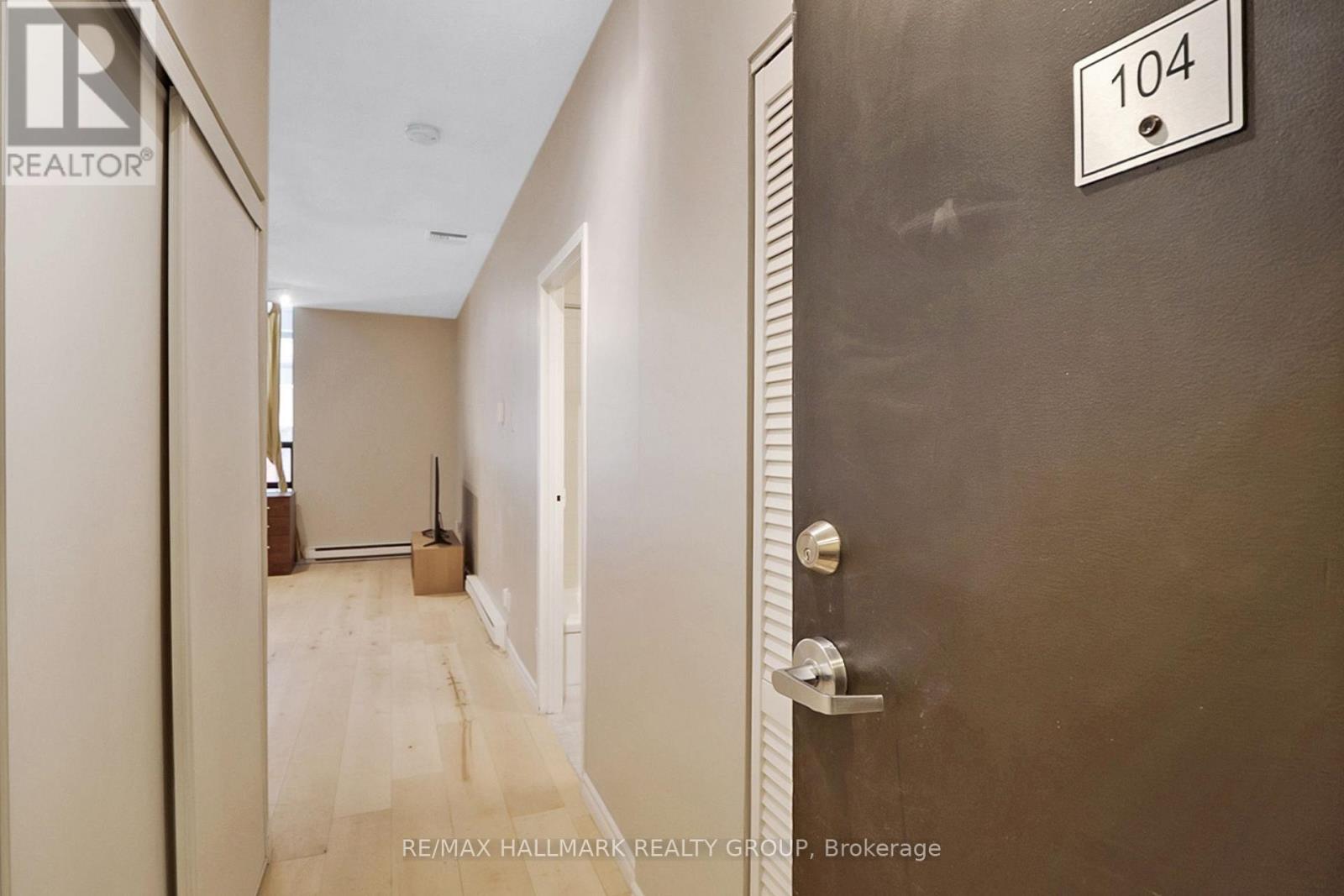 Welcome to 104-475 Laurier Avenue West, a turnkey ground-floor studio in a quiet, concrete building with only one neighbour and central A/C, central heating and high ceilings. Thoughtfully renovated in 2025 with new engineered maple hardwood floors, kitchen cabinets, counters, flooring, updated bathroom vanity, reglazed tub, fresh paint, and updated lighting. The smart layout features a fully partitioned kitchen and a built-in Murphy bed and desk positioned by a large operable window ideal for working or studying from home. One parking space is available for an additional cost. Walk Score 98, Bike Score 98, Rider Score 91. Steps to the LRT, Ottawa River, university, shops, restaurants, and the new main library. Perfect for first-time buyers, downsizers, investors, or home-based professionals. (id:58075)