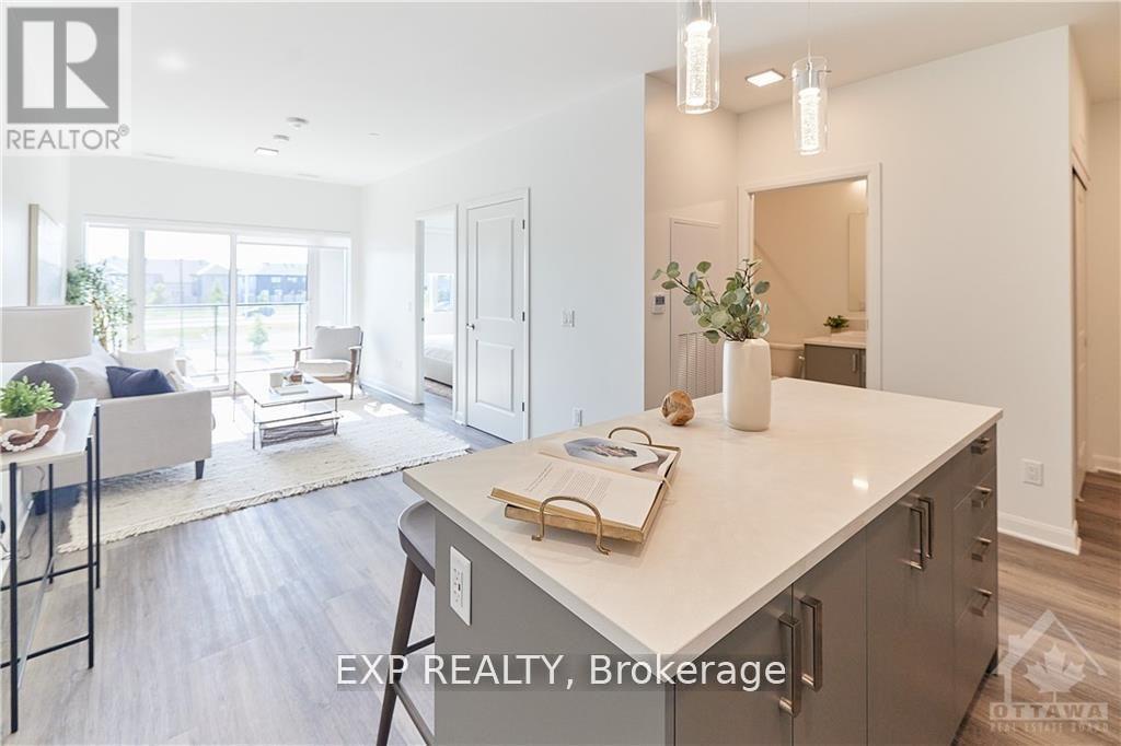 Welcome to Ottawas desirable Findlay Creek neighbourhood where this spacious & well lit unit featuring 1 bedrooms + den, 1 full bathrooms. These apartments are designed for comfort and style, balancing open concept layouts with features/finishes to elevate your every day life. You'll enjoy big and bright bedrooms, in-suite laundry, a cozy den, a modern kitchen with ample storage and a private balcony. Pet friendly. Explore an abundance of parks, nature trails, restaurants, shops &entertainment venues. These buildings offer a range of amenities- exercise room, games and entertainment room & a party room. Includes wifi, AC& heat, in unit laundry. Tenant is responsible for water and electricity. Parking additional $125/month. (id:58075)