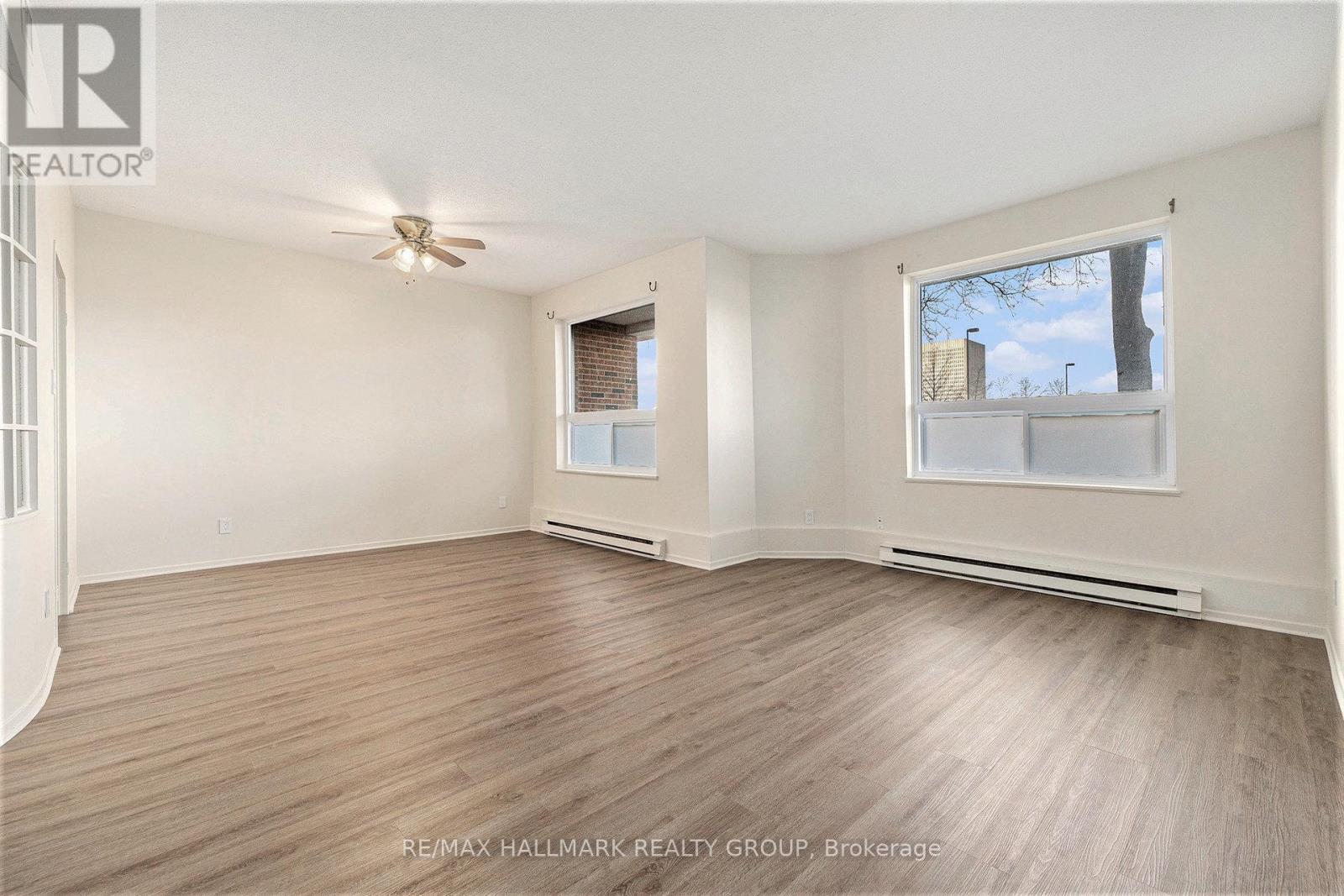 Welcome to 101-50 Emmerson Avenue, one of the largest and best-priced condos in the area on the market. Ideal for first-time buyers, investors, or downsizers. This spacious ground-floor unit in a well-maintained building is located just steps from the Ottawa River in Mechanicsville. Offering exceptional natural light and a freshly painted interior, this 2-bedroom, 1-bathroom condo features modern vinyl flooring, a bright open-concept layout, and low-maintenance living at its best. The kitchen is designed for function and style, with white cabinetry, a subway tile backsplash, and white appliances, complemented by a frosted glass partition that enhances the flow of light from the living area. The generous primary bedroom boasts ample closet space and easy access to additional in-unit storage. The second bedroom is conveniently located near the 3-piece bathroom, complete with a full tub/shower combo. Additional features include in-unit laundry, a parking spot (#17), a storage locker (#101), and access to building amenities such as a second-floor terrace, gym, sauna, bike storage, party/meeting room, and a modern lobby. Just steps from the Kichi Zibi Mikan pathway, Parkdale Market, Westboro and Hintonburg shops, LRT transit, and more. This is the perfect home for those seeking the perfect blend of nature and urban convenience. Call us for a private tour! (id:58075)