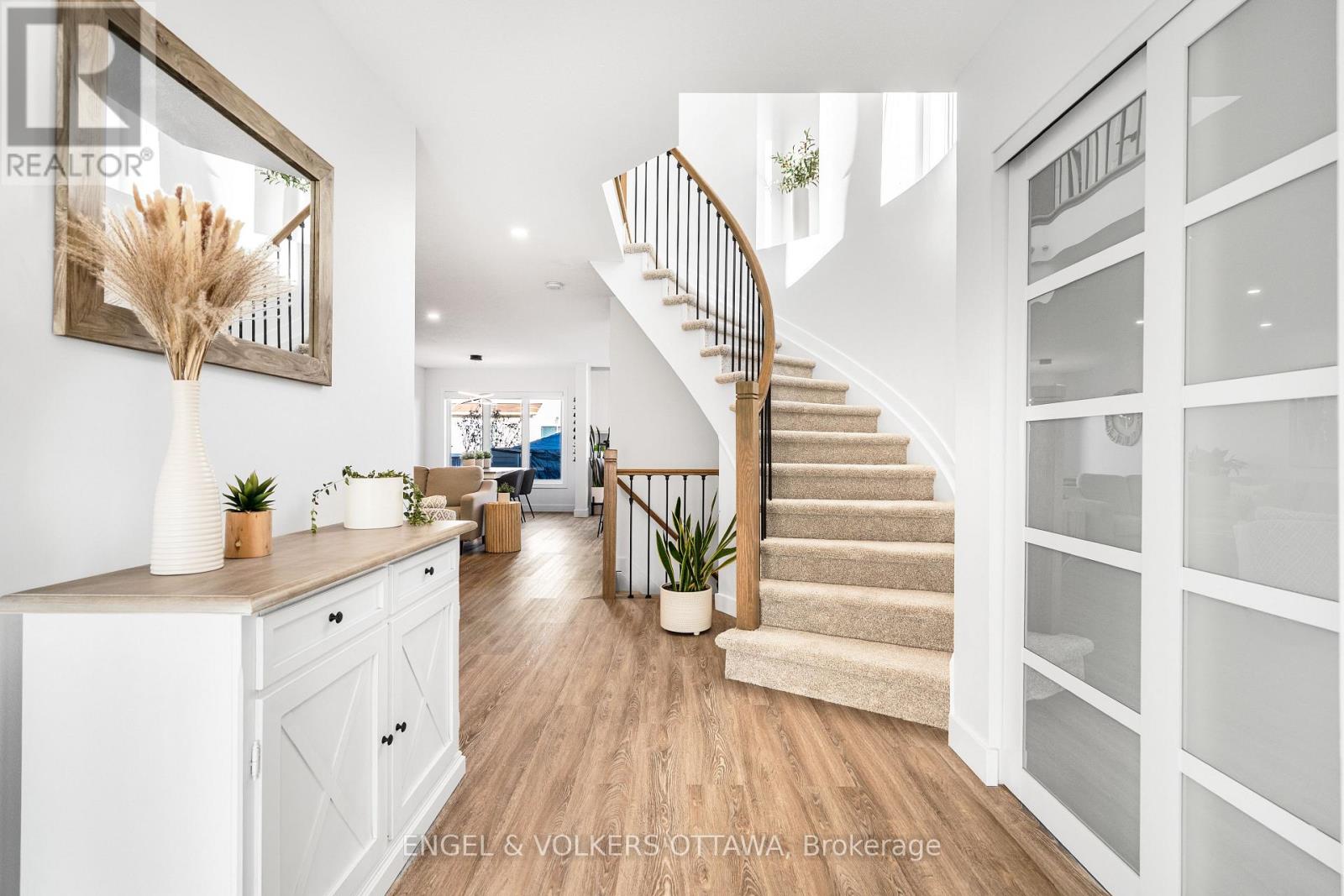 This exceptional townhome blends modern elegance with everyday functionality, delivering a truly turn-key living experience. A generous foyer welcomes you into a bright, open-concept main level featuring updated flooring, modern baseboards, and LED pot lighting throughout, including the garage. The living room, anchored by a beautifully appointed electric fireplace with custom stonework, flows effortlessly into the dining area and a chef-inspired kitchen showcasing white quartz countertops, a versatile centre island, and a chic coffee bar. A refreshed main floor powder room adds comfort and convenience.From the kitchen, step into a private backyard retreat designed for both relaxation and entertaining, featuring patio stones, added exterior power, a gazebo, and a soothing hot tub. A graceful curved staircase with enhanced lighting leads to the upper level, where three inviting bedrooms await, including a luxurious primary suite with a walk-in closet and a spacious 4-piece ensuite complete with a deep soaker tub.The finished lower level continues the home's refined feel with plush carpeting, a stylish recreation room, a modern bathroom, a dedicated storage room, and an updated laundry area with contemporary lighting. Major mechanical upgrades further enhance peace of mind, while thoughtful improvements throughout reflect true pride of ownership. Beautifully landscaped front and back and ideally positioned across from a park and green space, and just steps to a nearby elementary school and daycare, this meticulously maintained residence offers comfort, sophistication, and confidence in every detail. (id:58075)