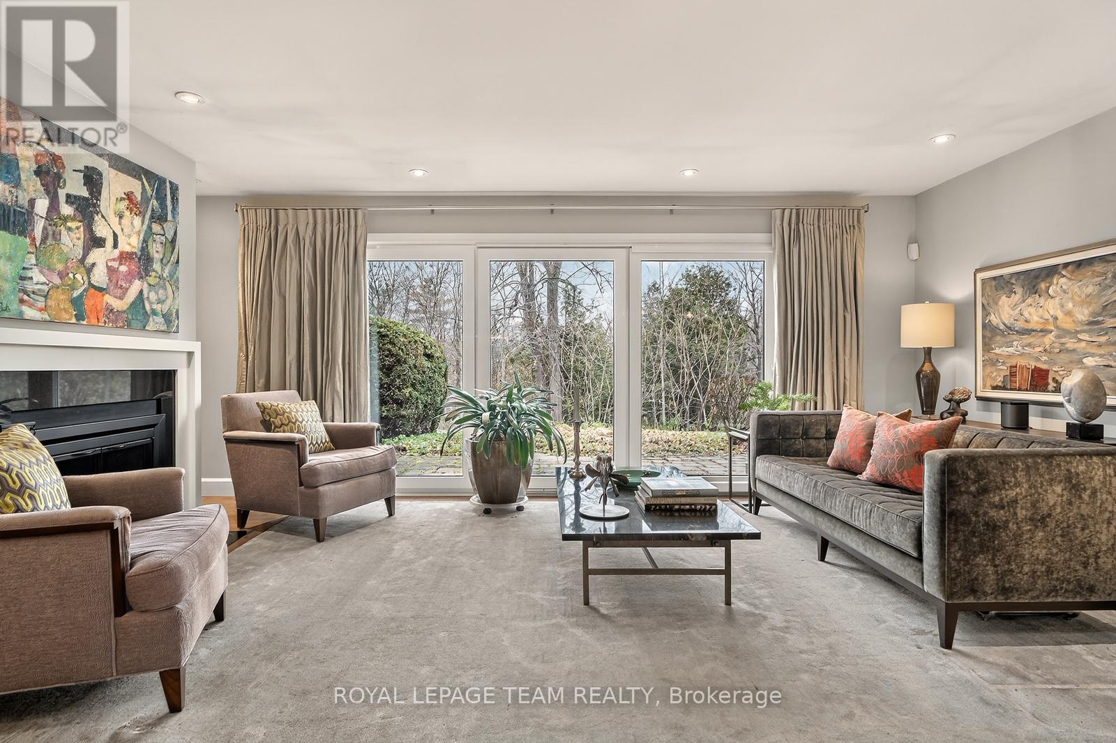 Welcome to Park House, an exclusive enclave within Rockcliffe Park's Carter-Caldwell Conservation Area. Meticulously designed by an Australian architect of extraordinary thought and precision, this one-level residence balances refined design with natural serenity. A grand entry, crowned by a sculptural chandelier and mirrored wall, opens to luminous living and dining spaces of quiet elegance, anchored by a wood-burning fireplace. Maple floors, halogen-quartz lighting, and premium dimmers shape ambiance at every hour. The beloved family room and adjoining terrace - with interlock stone and under-patio lighting - invite long evenings beneath the trees beside The Pond. The kitchen is a study in function and beauty with pull-outs, layered lighting, multiple deep sinks and expansive counter space. A tranquil library/office, generous guest suite, and vast primary offer calm and comfort. Distinguished residents of Whitemarl enjoy a private conservation-area enclave minutes from Beechwood Village, within Rockcliffe Park - refined living at its most effortless and serene. (id:58075)