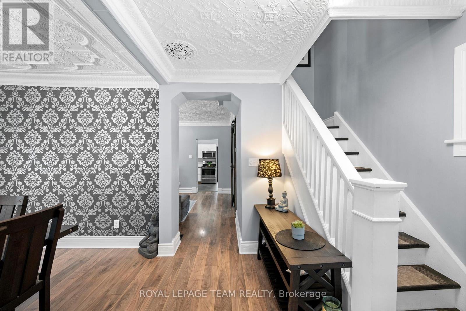Beautifully renovated home blending modern upgrades with timeless character, ideally situated on a desirable corner lot. Extensive improvements since 2020 include all new flooring throughout, fresh neutral paint, updated lighting, and widened interior doorways with modern 4-panel doors and hardware. The main floor features a fully redesigned kitchen with GE stainless steel appliances, granite countertops, white shaker cabinetry, subway tile backsplash, LED pot lighting, and a 32" farmhouse sink. Original 1920 tin ceilings and crown moulding have been refinished in crisp white, adding charm and character. A convenient mudroom addition off the kitchen offers additional storage and access to the backyard, along with a stylish black steel entry door. Upstairs, the second floor includes a renovated full bathroom with new plumbing, a large porcelain tub with full-height tile surround, new vanity and toilet, plus a custom barn board accent wall. The primary bedroom features a newly created walk-in closet. The third floor offers additional living space with updated laminate flooring. Step outside to enjoy a fully fenced yard with double gate access from the street, perfect for trailers, equipment, or added convenience. A standout feature is the authentic original barn with loft, ideal for a workshop, hobby space, or at-home business setup. Additional updates include armour stone front steps, refinished staircases on all three levels, interior barn doors, updated half bath with full-size stackable laundry and new mechanicals including furnace (2024), hot water tank (2020, gas), air conditioning (2020) and sand point well (2025). Windows were previously updated (approx. 2013). Located within walking distance to the public school, post office, and general store, and just a 2-minute drive to the grocery store, this home offers the perfect blend of small-town convenience and modern living.All measurements as per Iguide Floorplan. Buyer to confirm all room sizes. (id:58075)